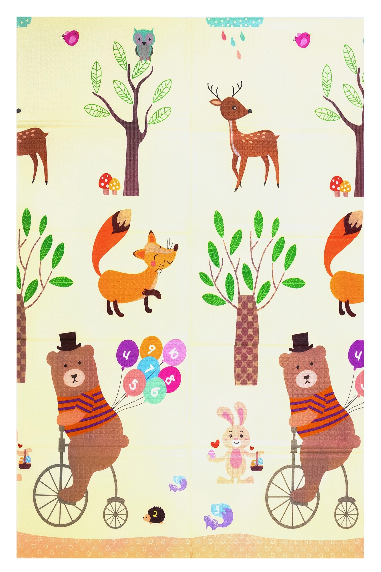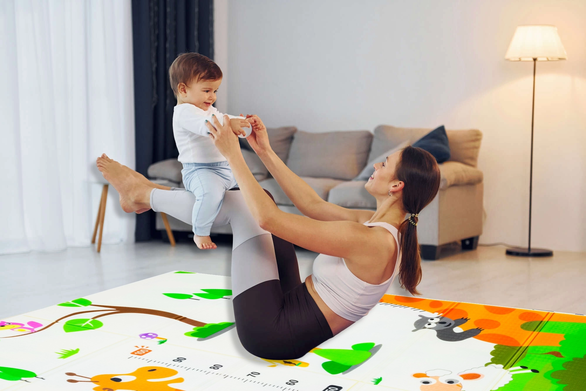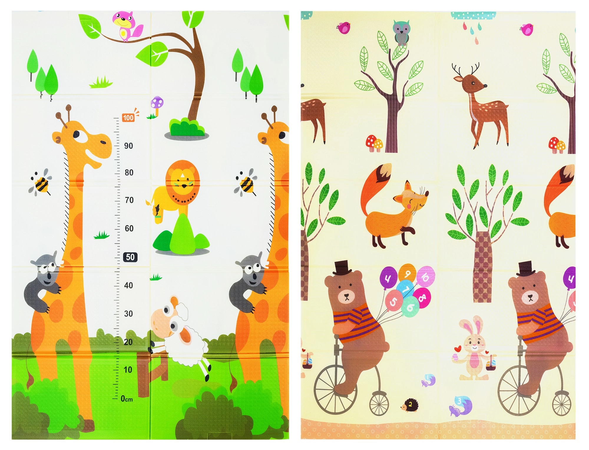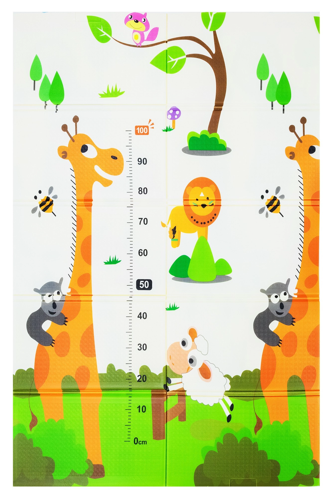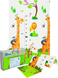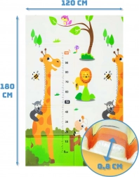 Lehká, měkká a bezpečná hrací podložka z prémiové XPE pěny pro miminka a děti od narození. Je oboustranná (zvířátka / žirafy s měrkou), voděodolná, skládací a díky přiložené transportní tašce se snadno přenáší. Splňuje evropské bezpečnostní normy EN71 a REACH, neobsahuje formamid, ftaláty, PVC ani BPA a poskytuje výbornou izolaci od chladu i protiskluzový povrch pro první lezení a kroky.