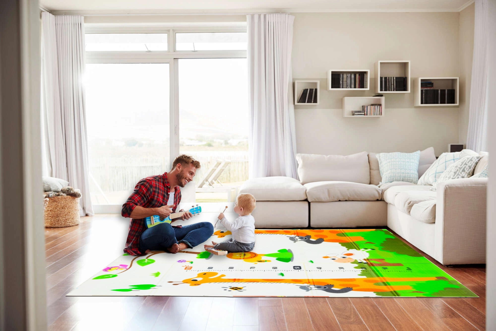 Objevte praktickou a stylovou podložku HUMBI, která vytvoří bezpečný a pohodlný prostor pro hraní, odpočinek i první pokusy o lezení. Rozměry 120 × 180 × 0,8 cm nabízejí dostatek místa, zatímco tlumící XPE pěna chrání při pádech a skvěle izoluje chlad z podlahy. Díky oboustrannému designu snadno změníte vzhled interiéru – jedna strana s roztomilými zvířátky, druhá se žirafami a praktickou měrkou.