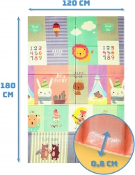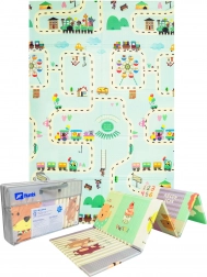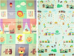 Hrací podložka HUMBI z kvalitní pěny XPE je ideální do dětského pokoje, obýváku i na zahradu. Díky tloušťce 0,8 cm výborně izoluje chlad z podlahy a zároveň tlumí nárazy při pádech. Oboustranný design nabízí na jedné straně roztomilá zvířátka v pastelových barvách a na druhé straně barevné uličky – skvělé pro zábavu i rozvoj smyslů.