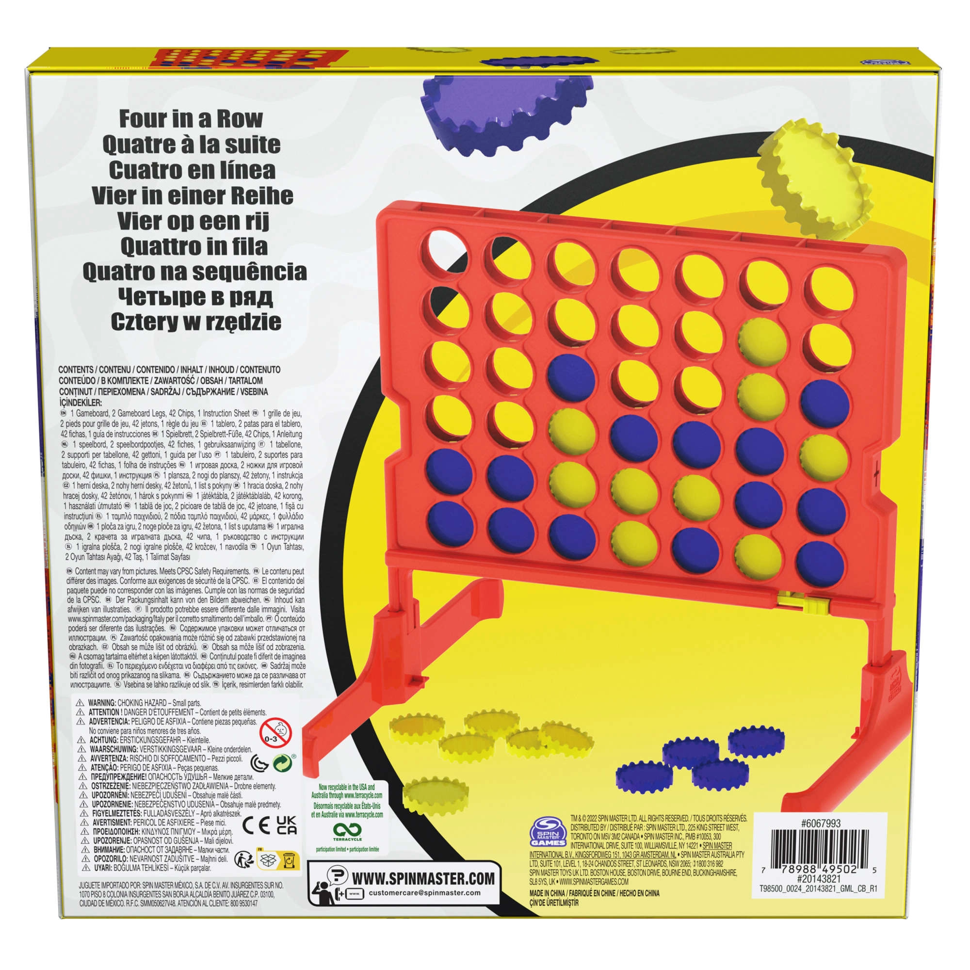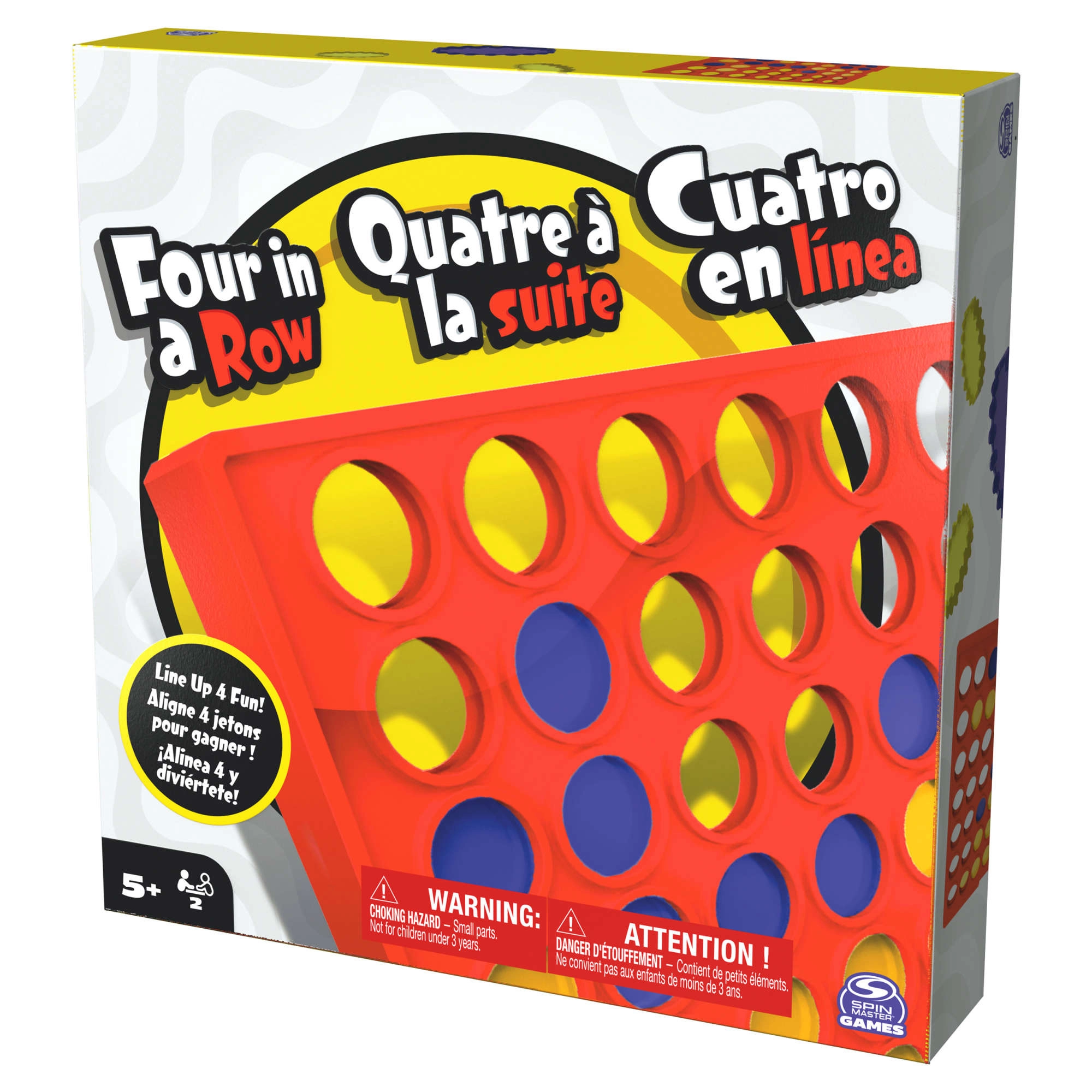 Balení obsahuje červenou stojanovou plán, dvě nožičky pro stabilitu, 42 žetonů v barvě žluté a modré a návod. Díky kvalitnímu zpracování od SPIN MASTER je zaručena dlouhá životnost i při častém hraní.