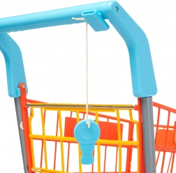 Součástí balení je 16 realisticky potištěných krabiček a plechovek s potravinami a plastové ovoce/zelenina, které dětem pomohou procvičovat třídění, počítání a sociální dovednosti při hře na obchod. U rukojeti je zavěšená drobná píšťalka/žeton pro ještě autentičtější zážitek z nakupování.