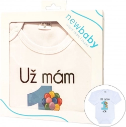 Stylové bavlněné body s dlouhým rukávem od značky New Baby potěší jako originální dárek k prvnímu narozeninám. Má vtipný potisk „Už mám 1 rok“ s balónky, je z 100% bavlny a nabízí pohodlné zapínání na cvočky na rameni a mezi nožičkami pro snadné oblékání a přebalování. Certifikované barvy potisku jsou bezpečné pro miminka.