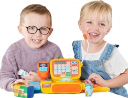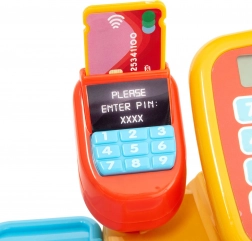 Přehledná klávesnice s funkcemi kalkulačky a kategoriemi zboží usnadňuje sčítání nákupu a procvičuje počítání i logické myšlení.