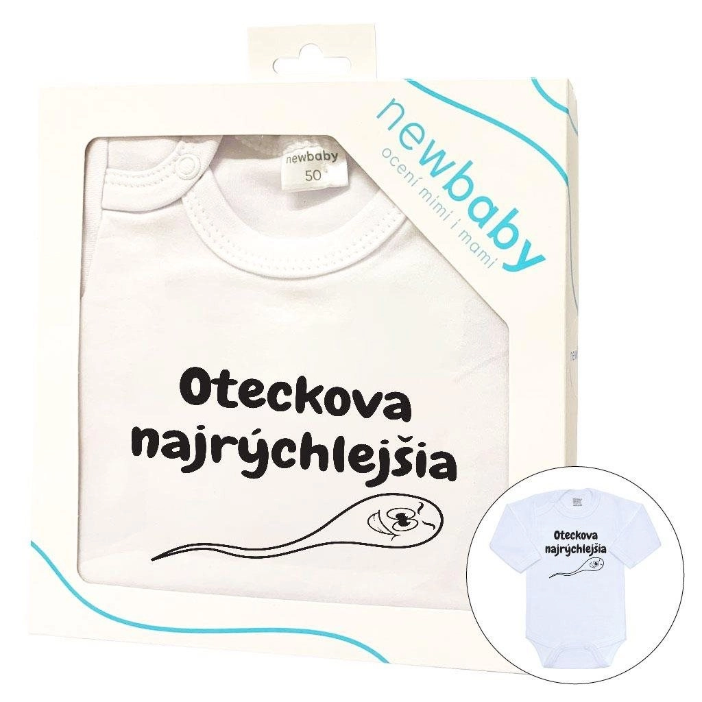 Originální kojenecké body New Baby přináší pohodlí a úsměv v jednom. Jemný a prodyšný materiál z 100% bavlny je šetrný k citlivé dětské pokožce, zatímco kvalitní potisk s textem OTECKOVA NAJRÝCHLEJŠIA zaručí, že vaše miminko bude nepřehlédnutelné.