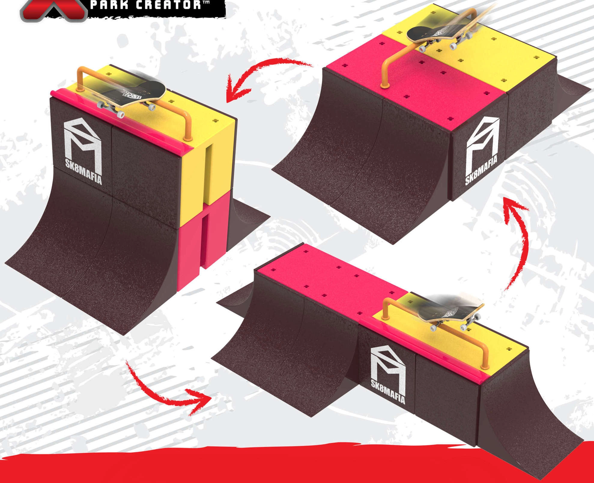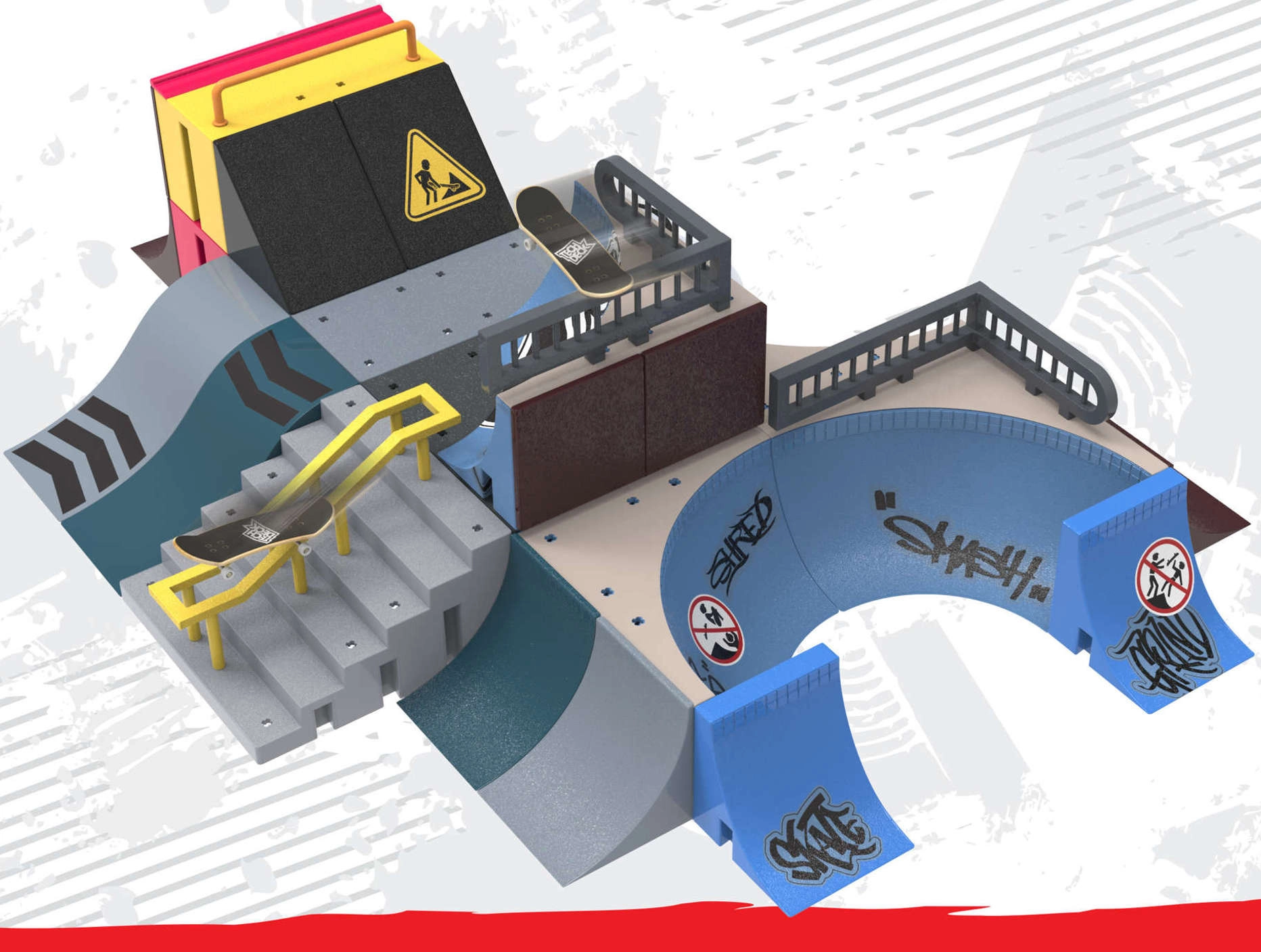 Jednoduše propojte rampy, boxy a zábradlí a postavte si originální skatepark přesně podle vašich představ.