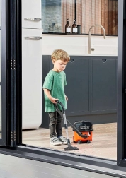 Oblíbený HENRY v dětském provedení promění úklid v zábavu. Reálný design s usměvavým obličejem, čtyřmi kolečky a průhlednou trubicí nadchne malé pomocníky. Vysavač skutečně saje drobné a lehké nečistoty (např. konfety či polystyrenové kuličky) a přitom zůstává jemný a bezpečný už od 3 let.