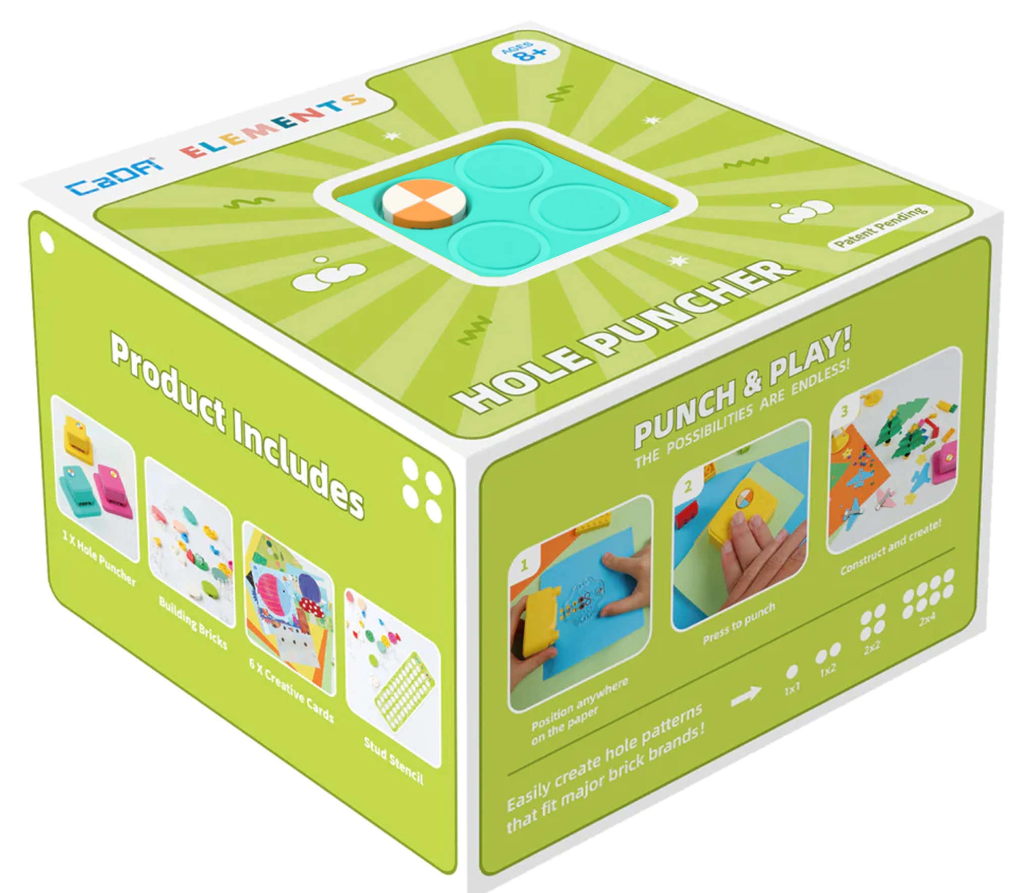 V balení najdete vše pro okamžitou tvorbu: děrovač s podložkou, 99 kostiček, 2 šablony s dírkami a 6 ozdobných karet. Sada je kompatibilní s dalšími sety CADA, takže ji snadno rozšíříte a posunete kreativitu ještě dál.