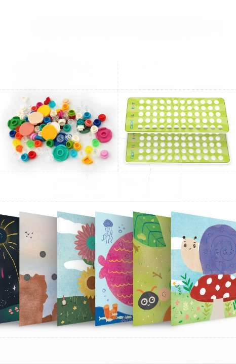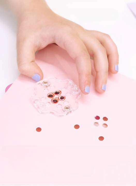 Děti nejprve vyrazí otvory do šablon a karet a poté je vyplní barevnými dílky. Vznikají hravé mozaiky a dekorace, které rozvíjejí fantazii.