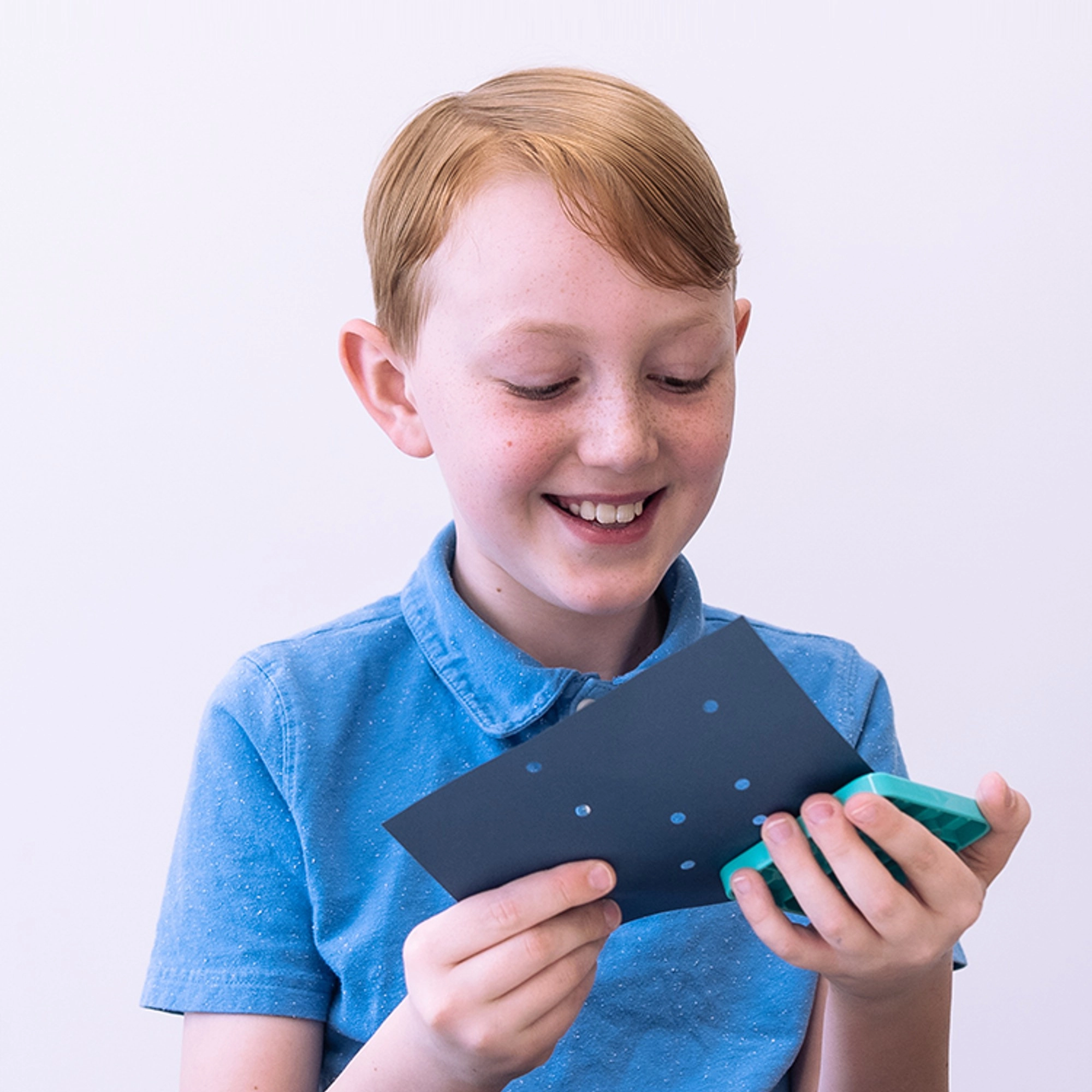 Objevte zábavné papírové tvoření spojené se stavebnicovými prvky. Nastavitelný děrovač CADA v modré barvě umožní dětem snadno vytvářet pravidelné otvory do šablon a karet, které následně vyplní barevnými kostičkami. Díky průhledné magnetické podložce je práce přesná, čistá a bezpečná.