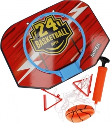 Set je vyroben z odolných materiálů (tkanina, síťovina a guma) a obsahuje vše potřebné: zadní desku s košem a sítí, mini basketbalový míč, ruční pumpičku s jehlou a montážní prvky. Není potřeba žádné napájení – stačí nafouknout míček a můžete střílet na koš.