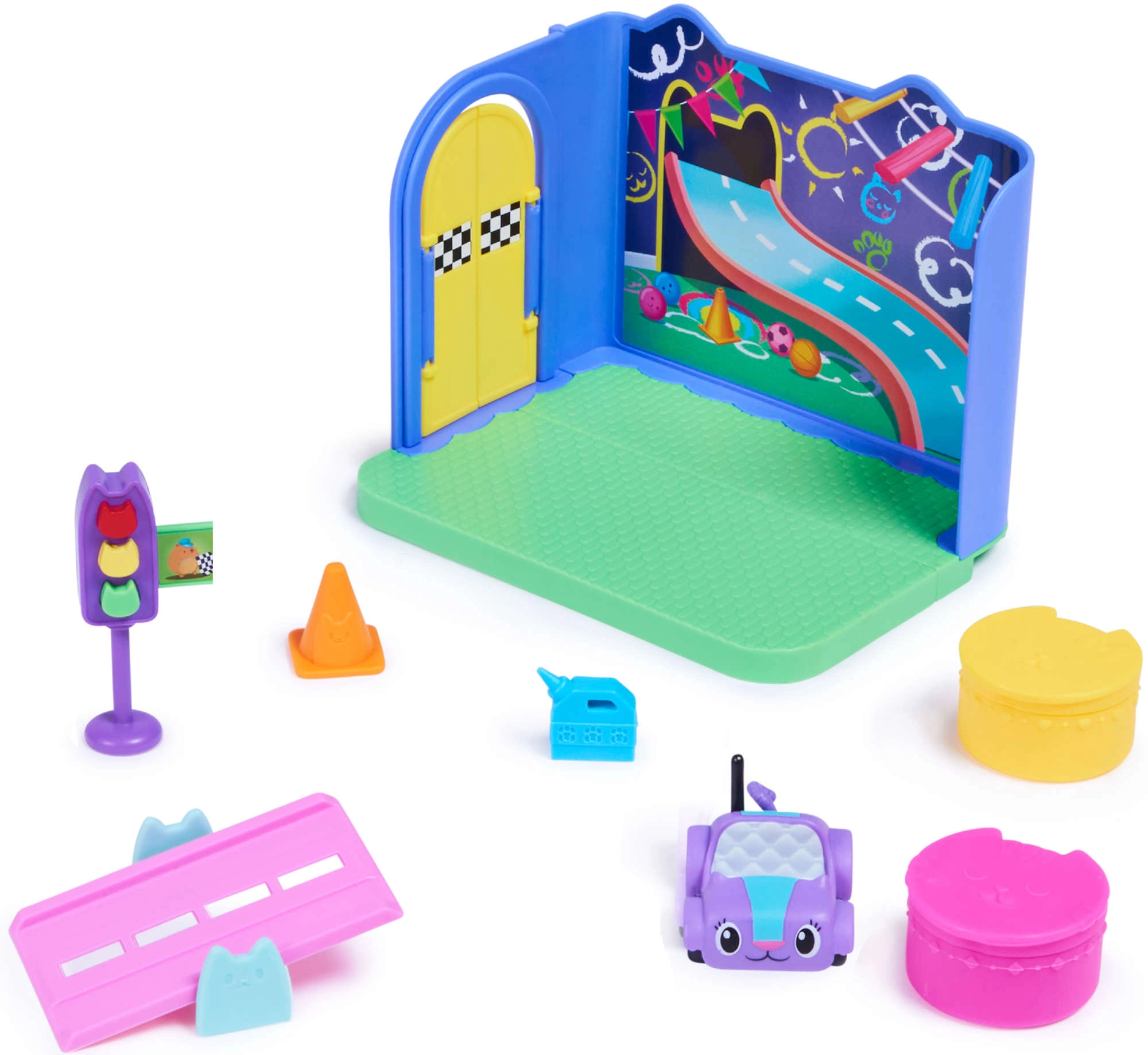 Objevte barevný pokoj Kocifura inspirovaný oblíbeným seriálem GABBY’S DOLLHOUSE. Děti si zamilují jízdu po rampě, zastavení u semaforu a otevírání překvapení v krabičkách. Set podporuje fantazii, jemnou motoriku i vytváření vlastních příběhů.