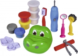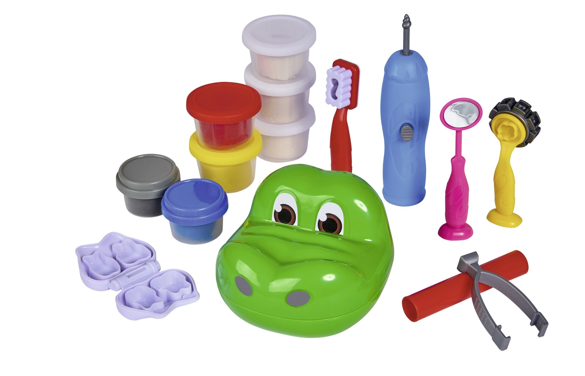 Zábavná kreativní sada pro malé zubaře s postavičkou krokodýla, kvalitní modelínou a nástroji od značky SIMBA ze série ART&FUN. Děti mohou vyrábět zuby, vrtat kaz, plombovat, nasadit rovnátka a trénovat hygienu zubů. Hra s modelínou rozvíjí jemnou motoriku, kreativitu a představivost – a zároveň pomáhá odbourat strach ze zubaře.