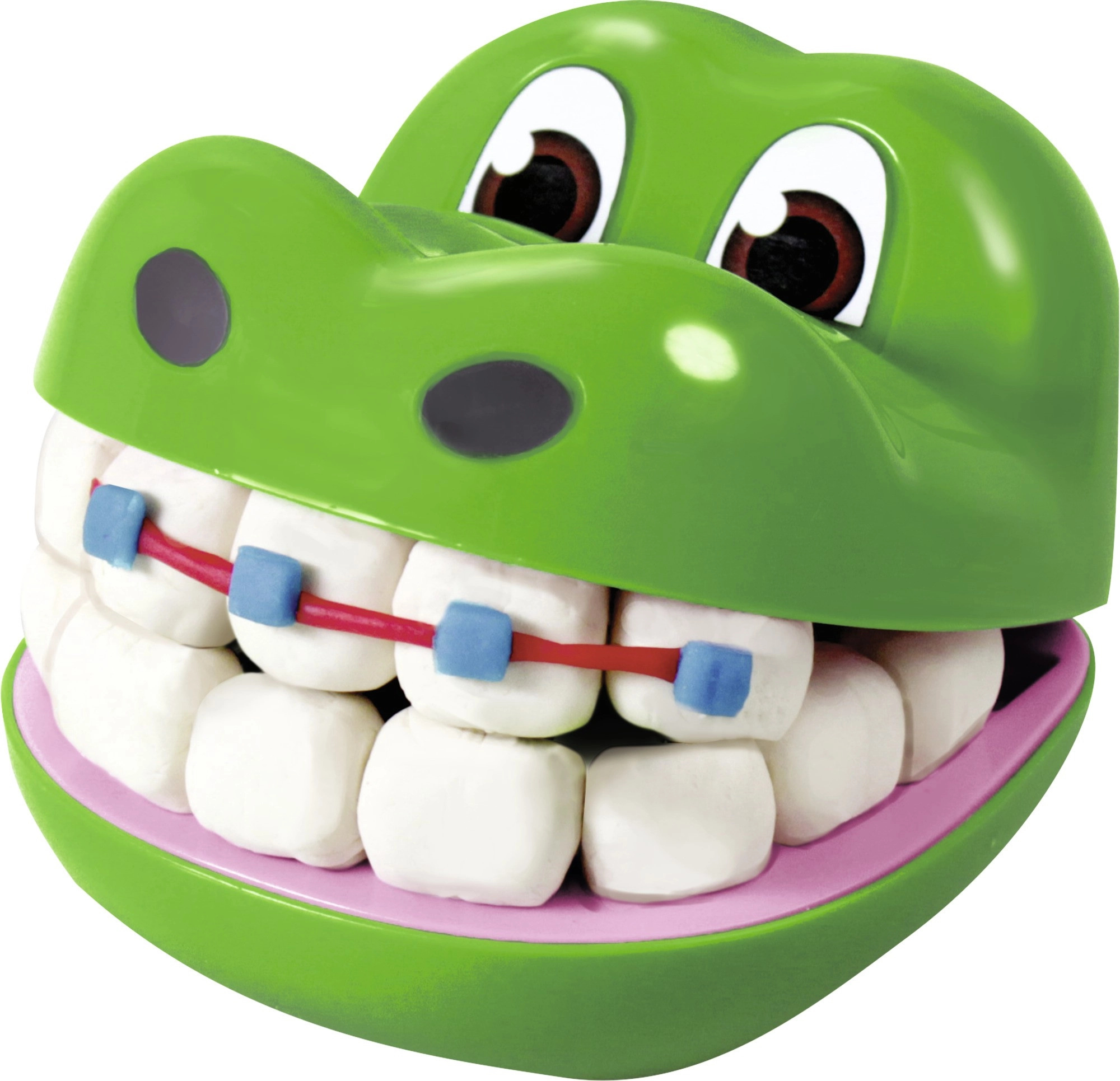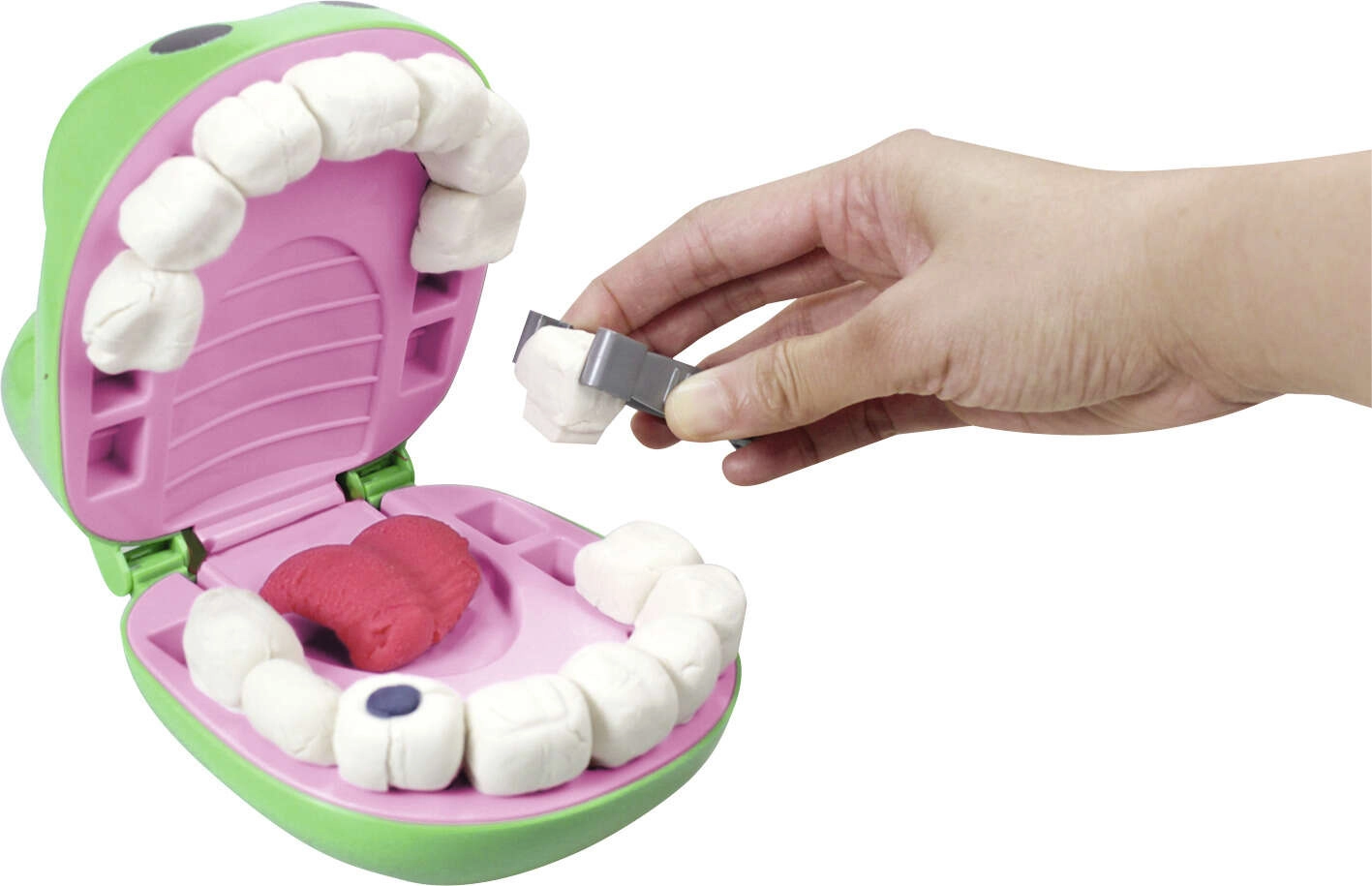- Hlava krokodýla, formy na zuby, nástroje (vrtačka, kleště, zrcátko, kartáček), doplňky pro rovnátka