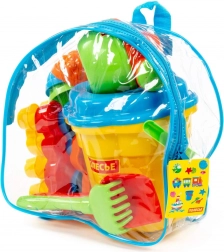 Praktická sada na písek v průhledném batohu potěší každého malého stavitele. Obsahuje vědro, 4 formičky zvířátek, 3 formičky báboviček, lopatku, hrabičky a konev – vše připravené na zábavu na hřišti i na pláži.