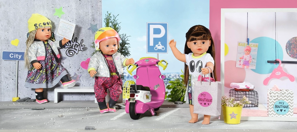 Rychlý přesun ve městě vyžaduje nejen chytrý dopravní prostředek, ale také stylové oblečení. A právě BABY born Deluxe Oblečení přináší tuto možnost. Růžový overal se stylovým písmenkovým potiskem je navíc úžasně pohodlný a skvěle drží na svém místě, ať už se panenka prohání na skútru nebo si hraje s kamarády na hřišti. Celý komplet je doladěn do nejmenších detailů, jako například manžety stříbrné bundy a neonově barevný pásek.