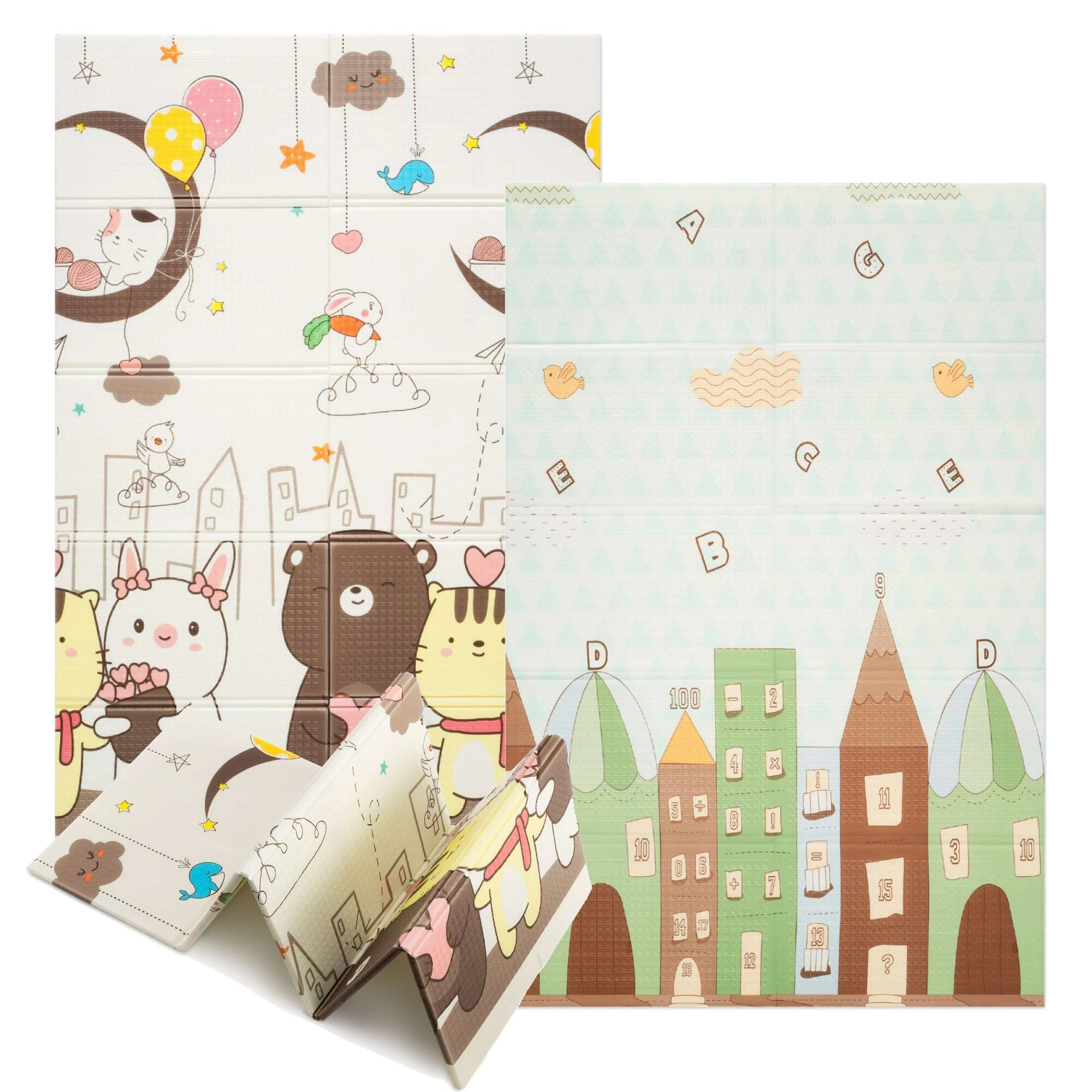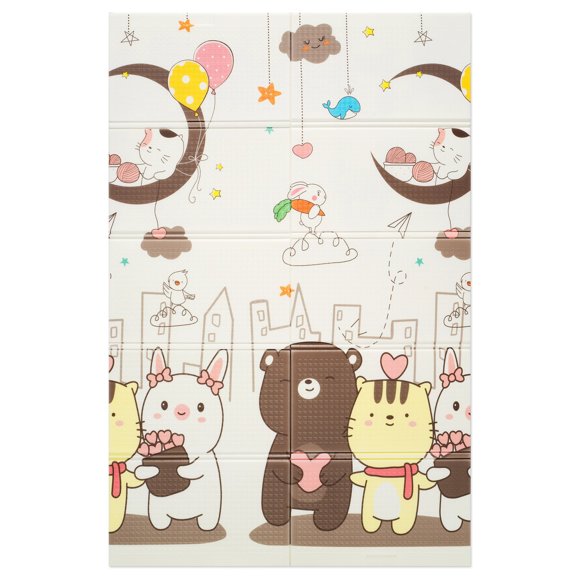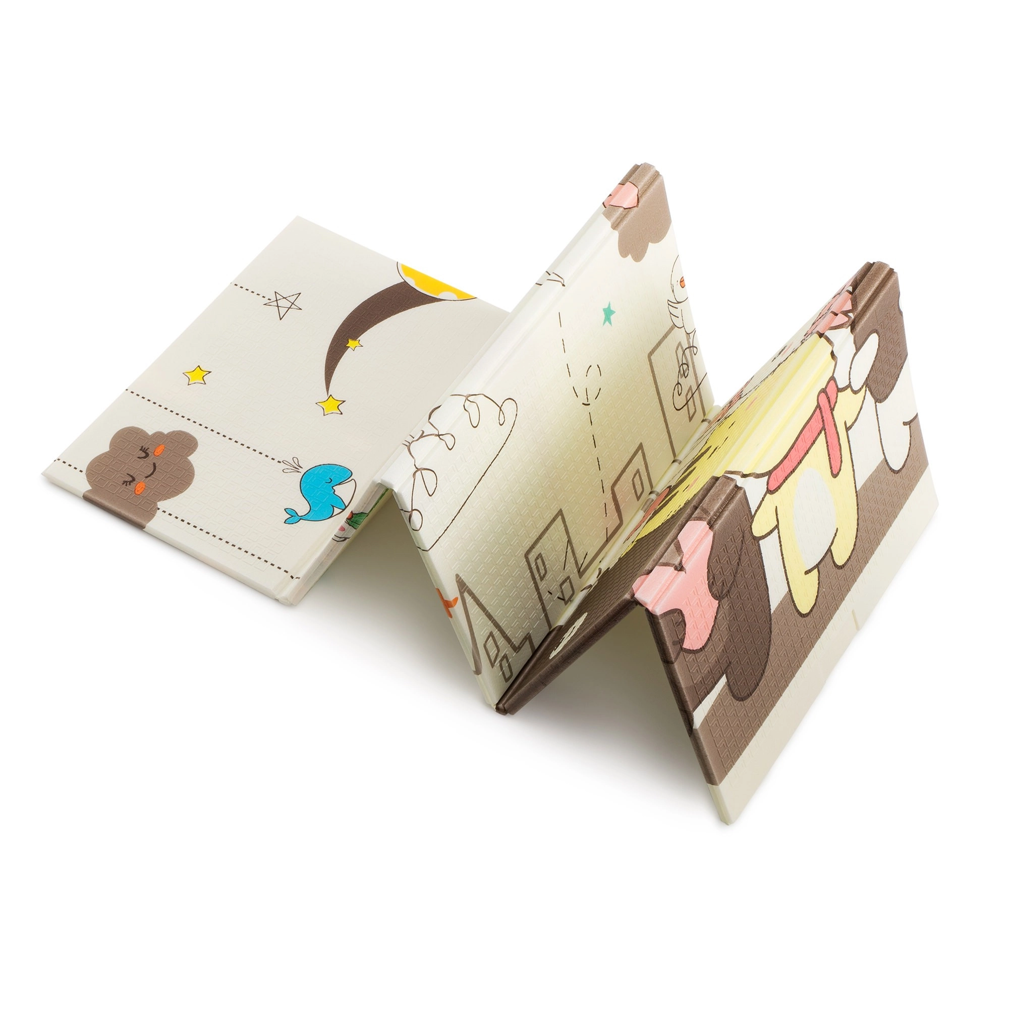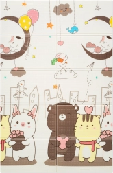 Každá strana nabízí jiný potisk – zvířátka, domečky a čísla. Podporuje zvídavost, učení a hezky zapadne do každého interiéru.
