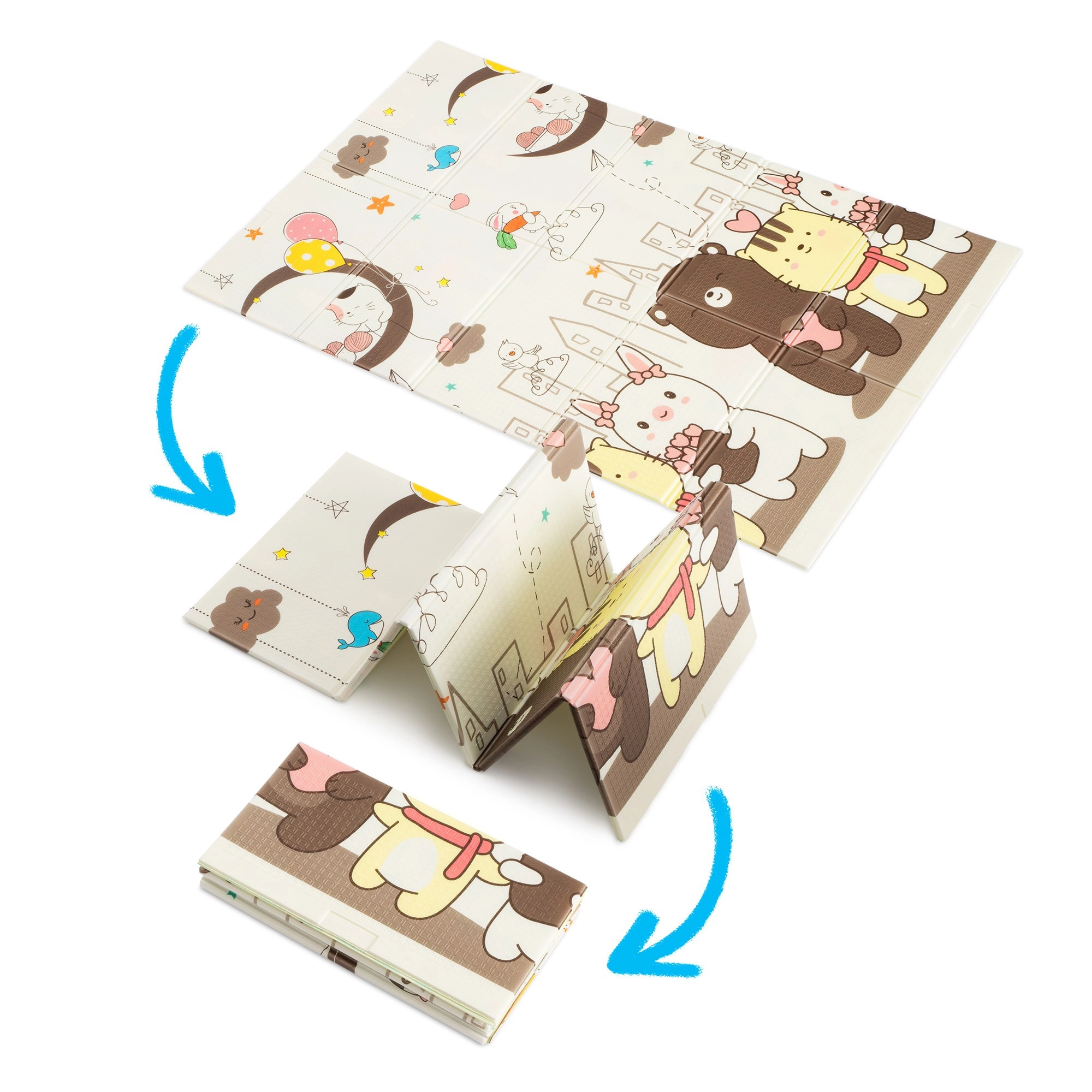 Podložka je skládací do kompaktních sekcí – během pár vteřin ji rozložíte i uložíte. Voděodolný a snadno omyvatelný povrch stačí otřít vlhkým hadříkem, takže je ideální i pro alergiky: nezachytává prach ani roztoče. Balení obsahuje uzavíratelnou tašku s uchy pro pohodlné přenášení doma, na zahradě, pikniku i na cestách.