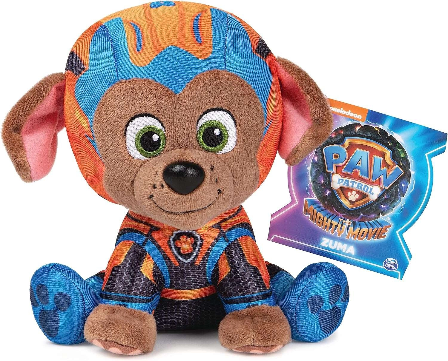 Roztomilý plyšový pejsek Zuma z filmu PAW PATROL The Mighty Movie potěší všechny malé fanoušky. Je měkký, hebký na dotek a oblečený do superhrdinského modro‑oranžového kostýmu, ideální na mazlení i fantazijní hru doma i na cestách.