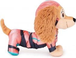 Plyšová fenka Liberty v oranžovo‑tyrkysovém oblečku má vyšívané detaily, měkoučké uši a kvalitní šití. Prémiové materiály zaručují dlouhou životnost i bezpečnost při dětské hře.