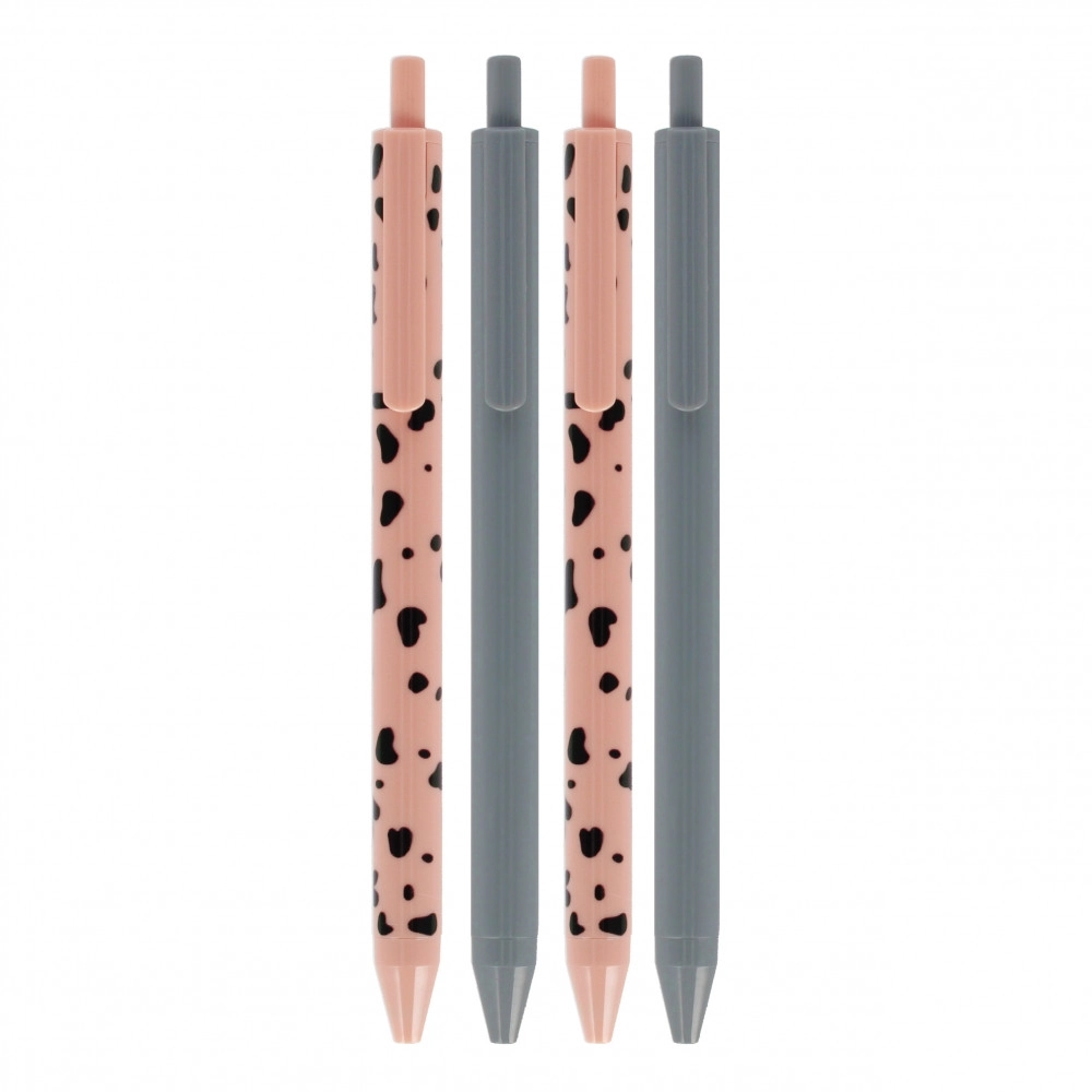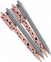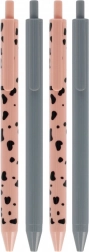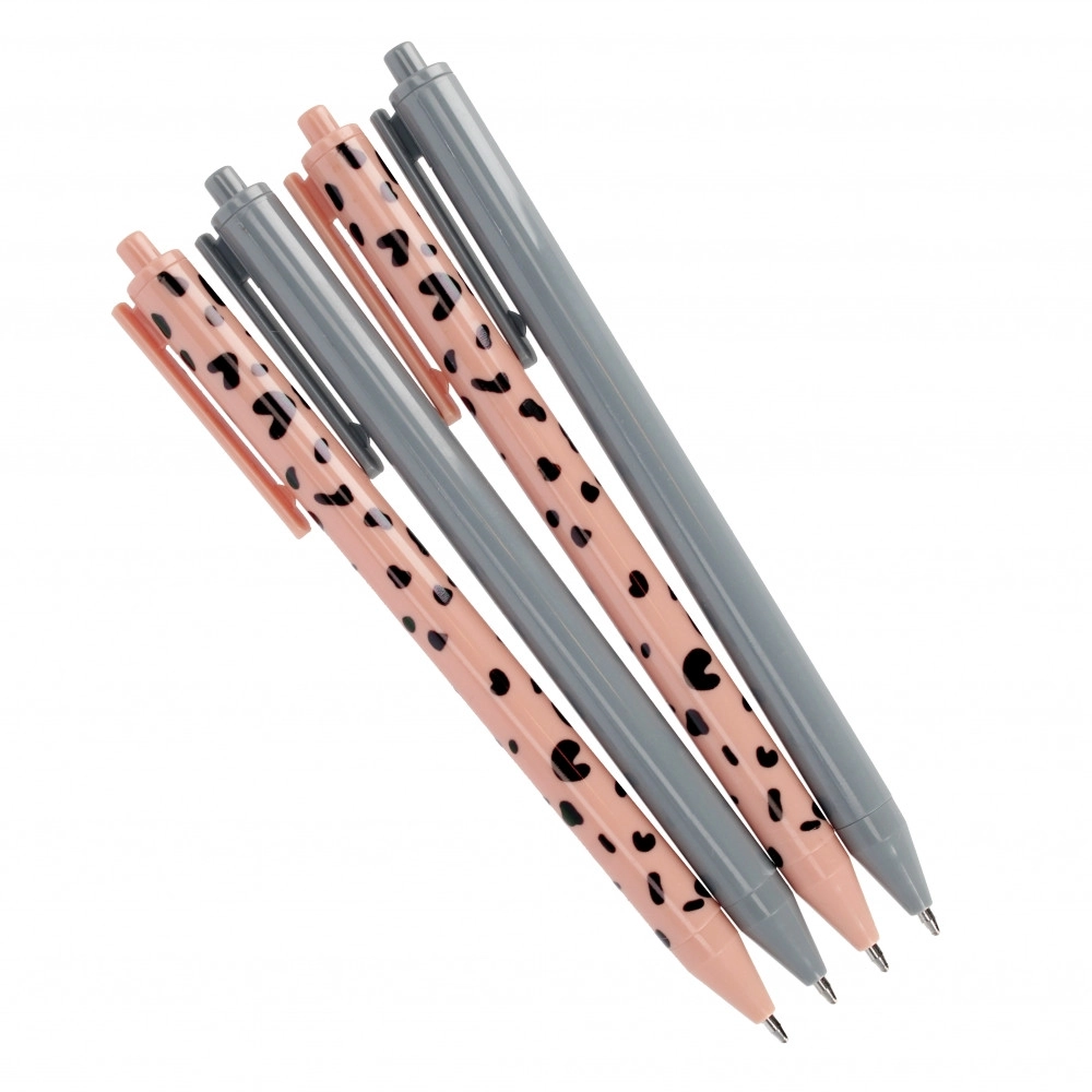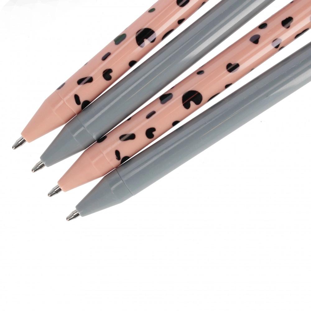 Tato sada obsahuje 4 elegantní kuličková pera – dvě v decentní šedé a dvě v růžové s dekorativním vzorem. Ergonomický, štíhlý tvar a hladké tělo pera zajišťují pohodlný úchop a spolehlivé psaní bez přerušování. Ideální pro poznámky, plánování i každodenní práci.