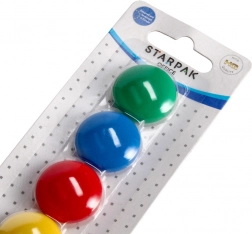 Praktická sada kulatých magnetů v mixu barev – zelená, modrá, červená a žlutá – o průměru 2,9 cm. Ideální pro kancelář, školu i domácnost. Magnety mají silnou přilnavost, lesklý povrch a snadno se uchopují, takže bezpečně udrží poznámky, fotografie i dokumenty na magnetických tabulích nebo lednici. Balení obsahuje 6 kusů. Vhodné pro děti 3+.