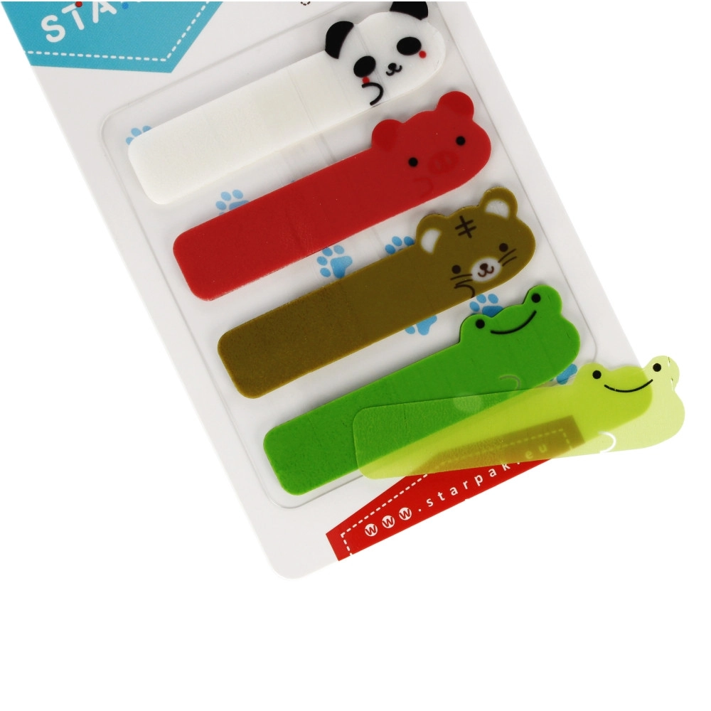 Hledáte hravý a funkční způsob, jak si označit důležité stránky? Tyto samolepicí indexové záložky se zvířátky vám pomohou rychle najít poznámky, kapitolky i pracovní podklady. Díky výrazným barvám a milým obličejům zvířátek jsou na první pohled nepřehlédnutelné a děti je budou rády používat.
