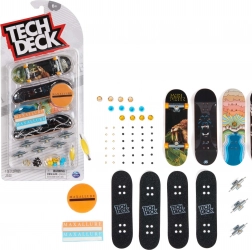1 kompletně smontovaný fingerboard TECH DECK, 3 desky k sestavení, 12 kol, 6 trucků, 24 šroubků, 12 matek, 2 samolepky, 1 klíč/nástroj