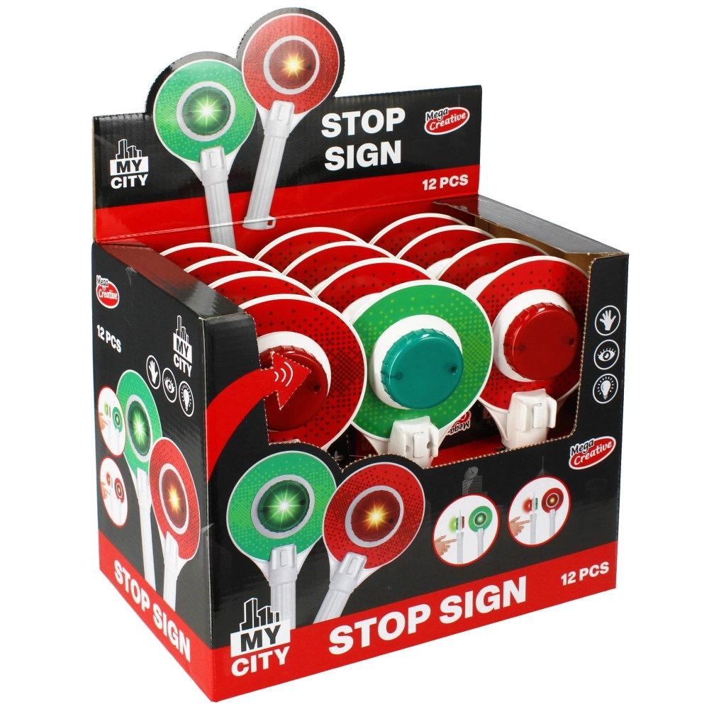 Zábavný doplněk pro malé policisty: zastavovací terč se světlem, který svítí zeleně na jedné straně a červeně na druhé. Ideální pro hraní i výuku dopravních pravidel, s bezpečným provozem na 2× AA 1,5 V baterie (součástí balení).