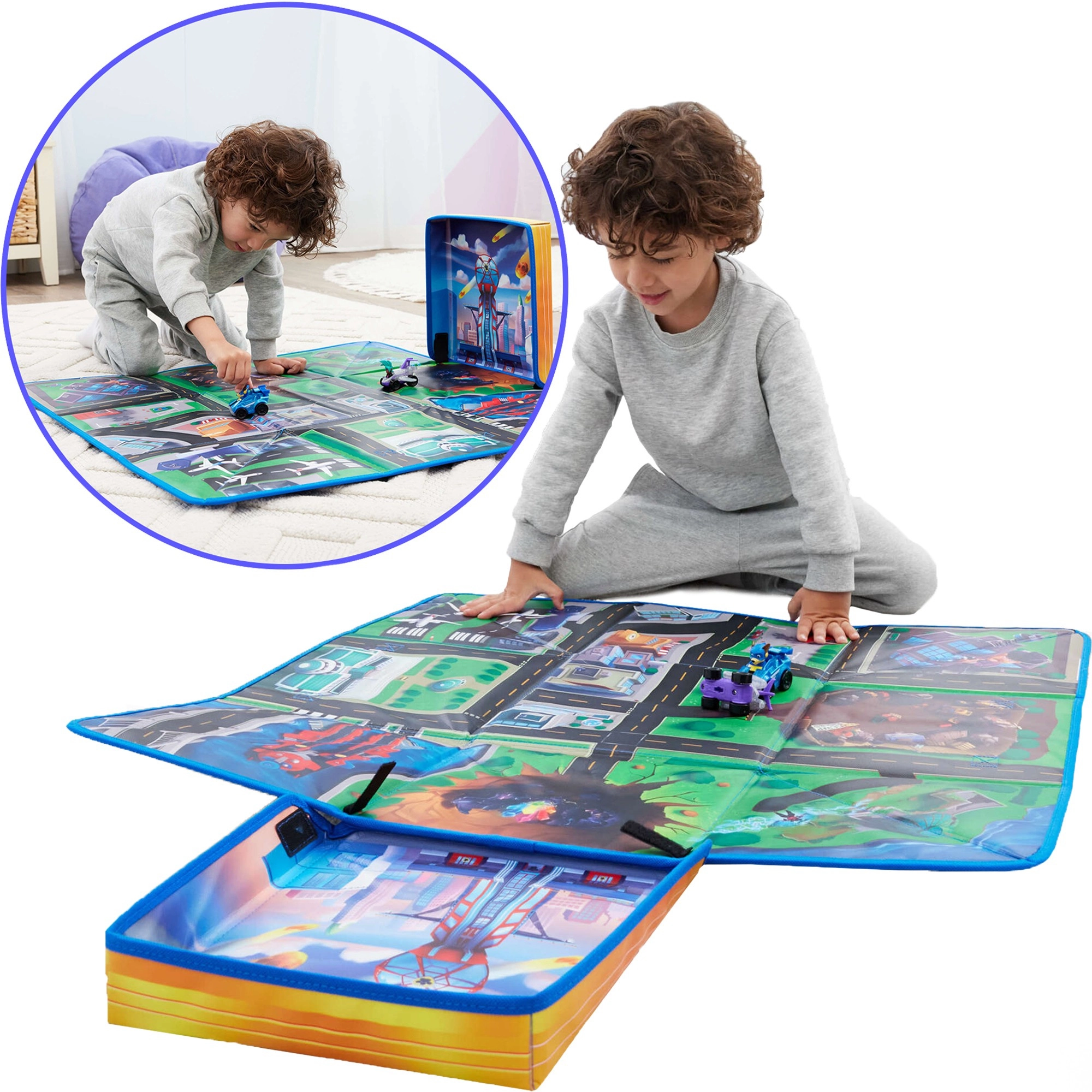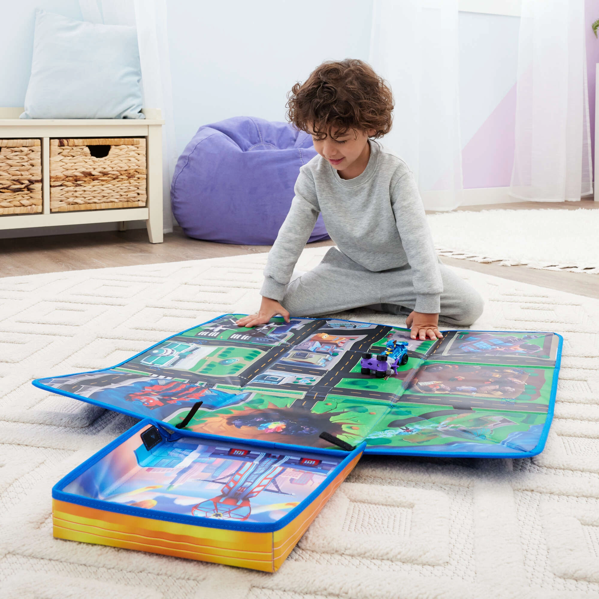 Objevte chytré 2v1 řešení pro malé fanoušky PAW Patrol: barevná herní podložka s motivem města a letiště, kterou lze po hře jednoduše složit do praktického úložného boxu. Děti si užijí kreativní jízdu s autíčky, scény z PAW Patrol: The Mighty Movie, a díky kompaktním rozměrům vše zase snadno uklidí.