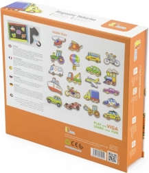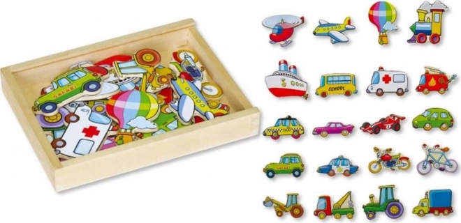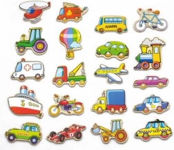 Dřevěné magnetky s motivy dopravních prostředků vám přinášejí zábavu a vzdělání v jednom. Sada obsahuje 20 magnetek v praktické krabičce, ideální pro děti.
