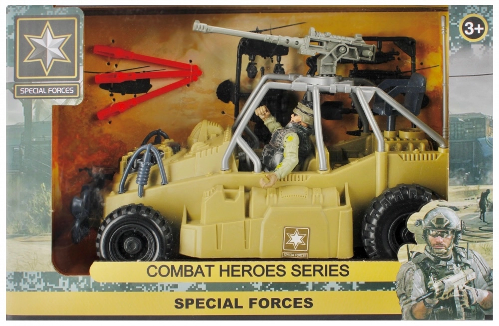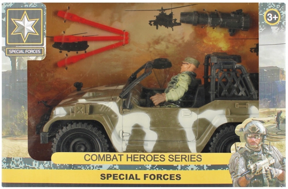 Akční hra začíná s tímto robustním vojenským terénním autem pro speciální operace. Děti ocení velká terénní kola, realistické doplňky a střílecí funkce pro napínavou hru. Ideální pro malé vojáky od 3 let.