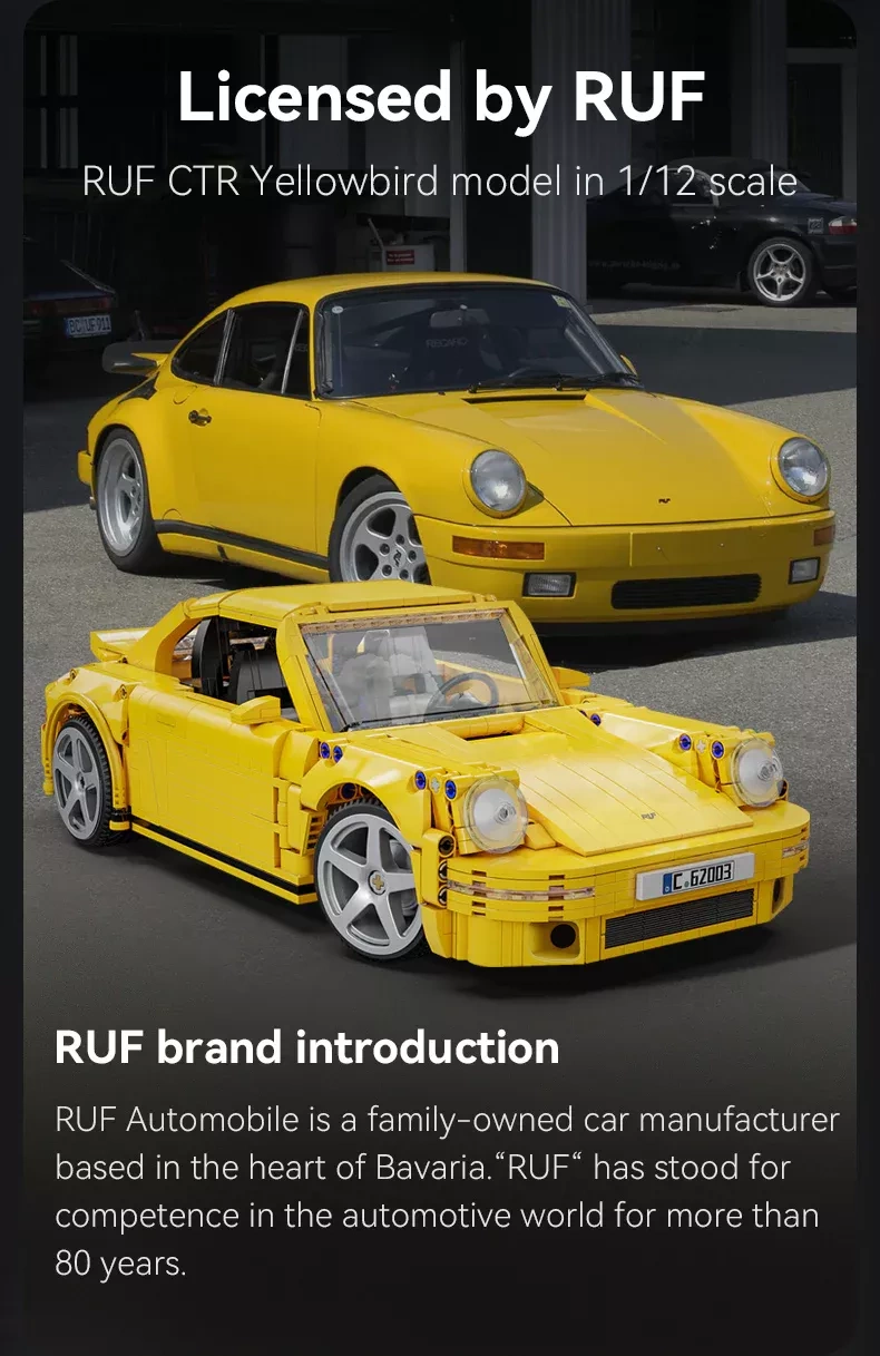Užijte si precizní stavebnici CaDA, která věrně zachycuje legendární RUF CTR Yellowbird v zářivě žluté barvě s černými detaily. Model vyniká realistickými mechanismy, otevíracími panely a funkčním řízením. Díky gumovým pneumatikám a bohatému interiéru s autentickými prvky je skvělý jak na vystavení, tak na hraní.