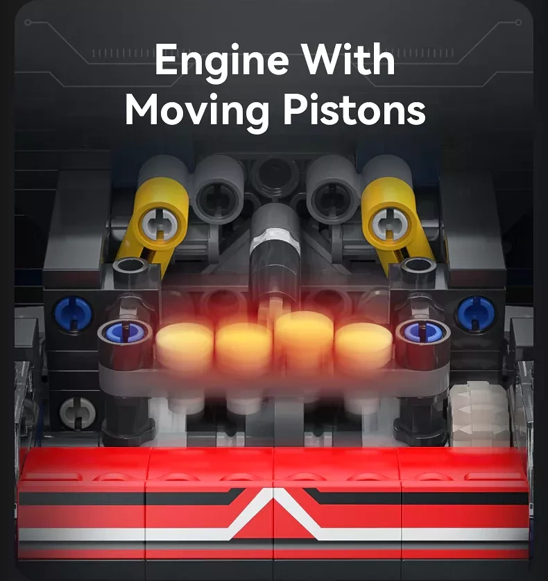 Díky otevíratelným panelům nahlédnete do motorového prostoru se zpracovaným motorem s pohyblivými písty, potěší také funkční řízení a odpružení obou náprav pro plynulý pohyb po různých površích. Gumové pneumatiky zajišťují jistý záběr a model si zachovává skvělý vzhled na polici i při hraní.