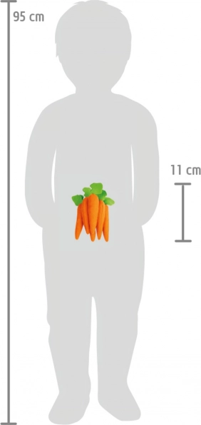 Doplňte svou dětskou kuchyňku nebo farmářský obchod těmito věrnými plstěnými mrkvemi. Balení obsahuje 7 kusů, které nejen obohatí každou hru, ale poslouží také jako dokonalé krmivo pro vaše plyšové koně, poníky nebo králíky.