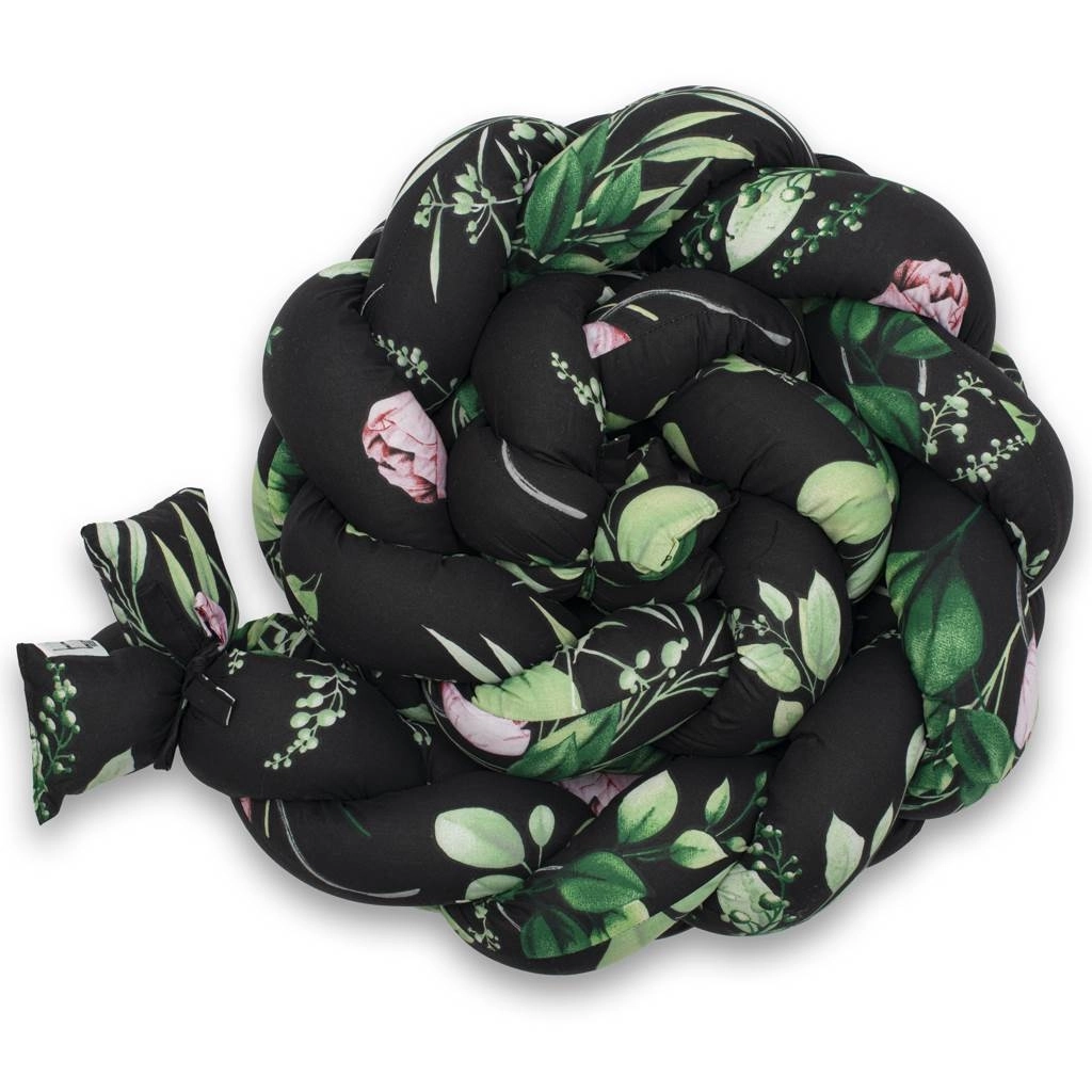 Hebký a praktický pletený cop New Baby je moderní alternativou klasického mantinelu. Díky měkké výplni a bavlněnému potahu poskytuje miminku komfortní ochranu při spánku i odpočinku. Elegantní černý podklad s květinovým vzorem dodá postýlce jedinečný styl.