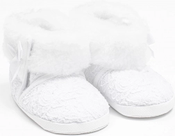 Hledáte měkoučké a teplé botičky pro novorozence na chladné dny? Kojenecké zimní kozačky New Baby zaujmou jemnou krajkou, lehkou konstrukcí a velmi příjemnou rounovou podšívkou z polyesteru. Zapínání na suchý zip usnadňuje obouvání a dobrou fixaci na nožičce.