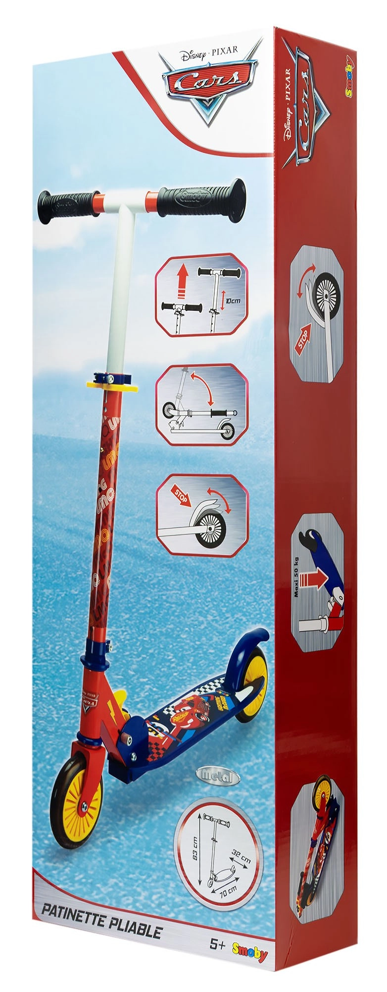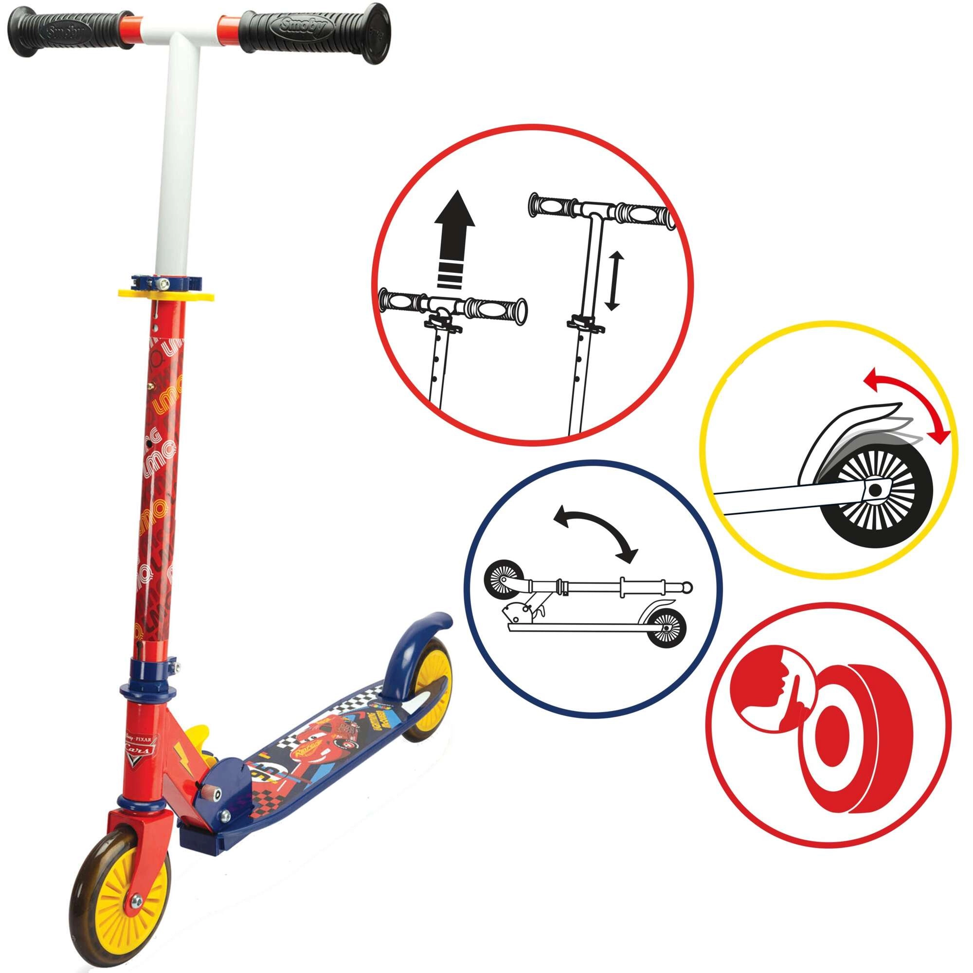 Lehká a odolná dětská koloběžka s motivem CARS – Blesk McQueen nabízí skládací konstrukci, nastavitelnou výšku řídítek a zadní nášlapnou brzdu pro bezpečnou a zábavnou jízdu. Díky hliníkovému rámu, protiskluzovému nášlapu a tichým kolečkům je ideální pro děti od 5 let, s nosností až 50 kg.