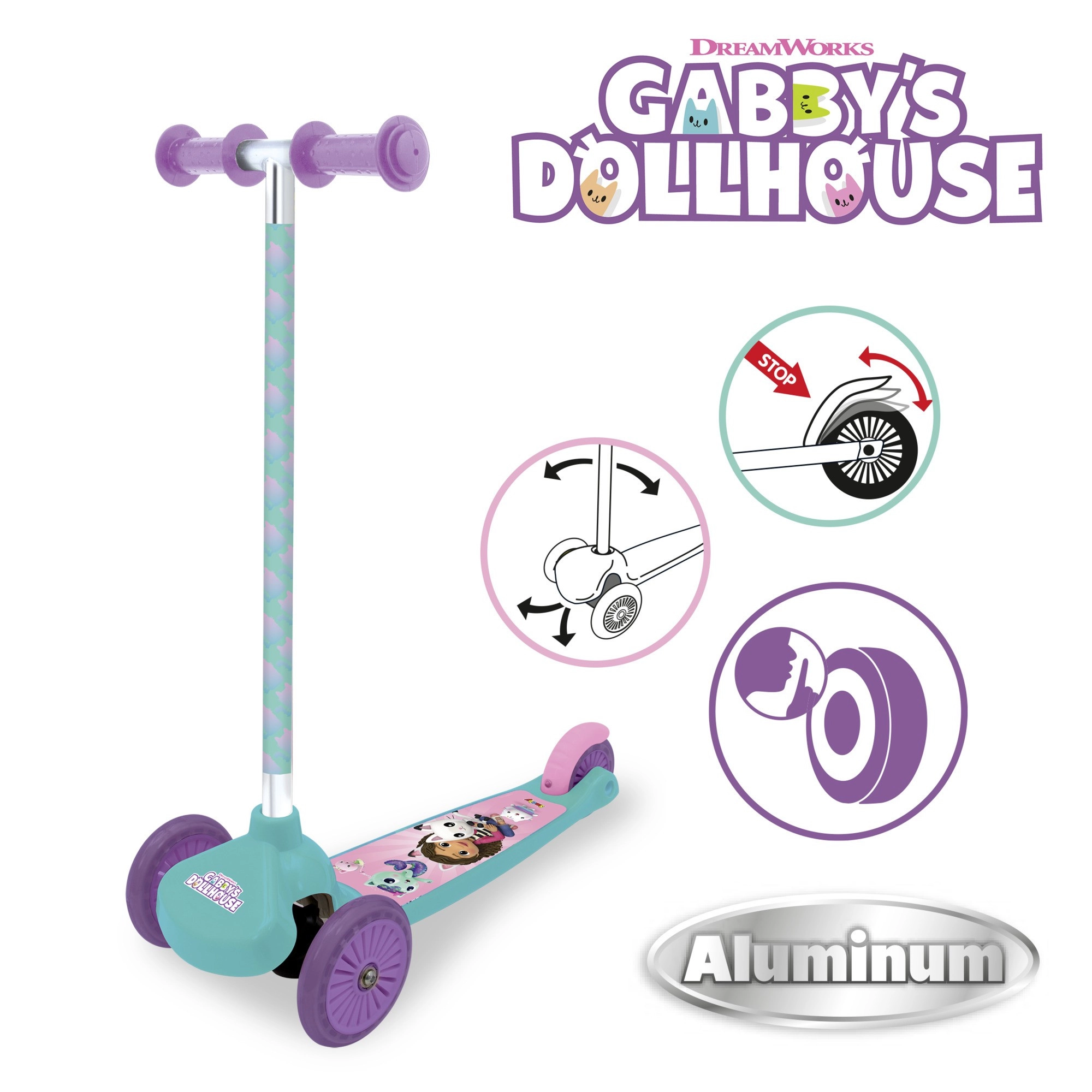 Dětská tříkolová koloběžka SMOBY s motivem Kocí domek GABI (Gabby's Dollhouse) je ideální pro malé jezdce od 3 let. Díky dvěma předním kolům, baluančnímu řízení a nožní brzdě nabízí lepší stabilitu, bezpečnější jízdu a snadné ovládání. Lehká konstrukce a tichá kolečka zajišťují pohodlnou a zábavnou jízdu doma i venku.