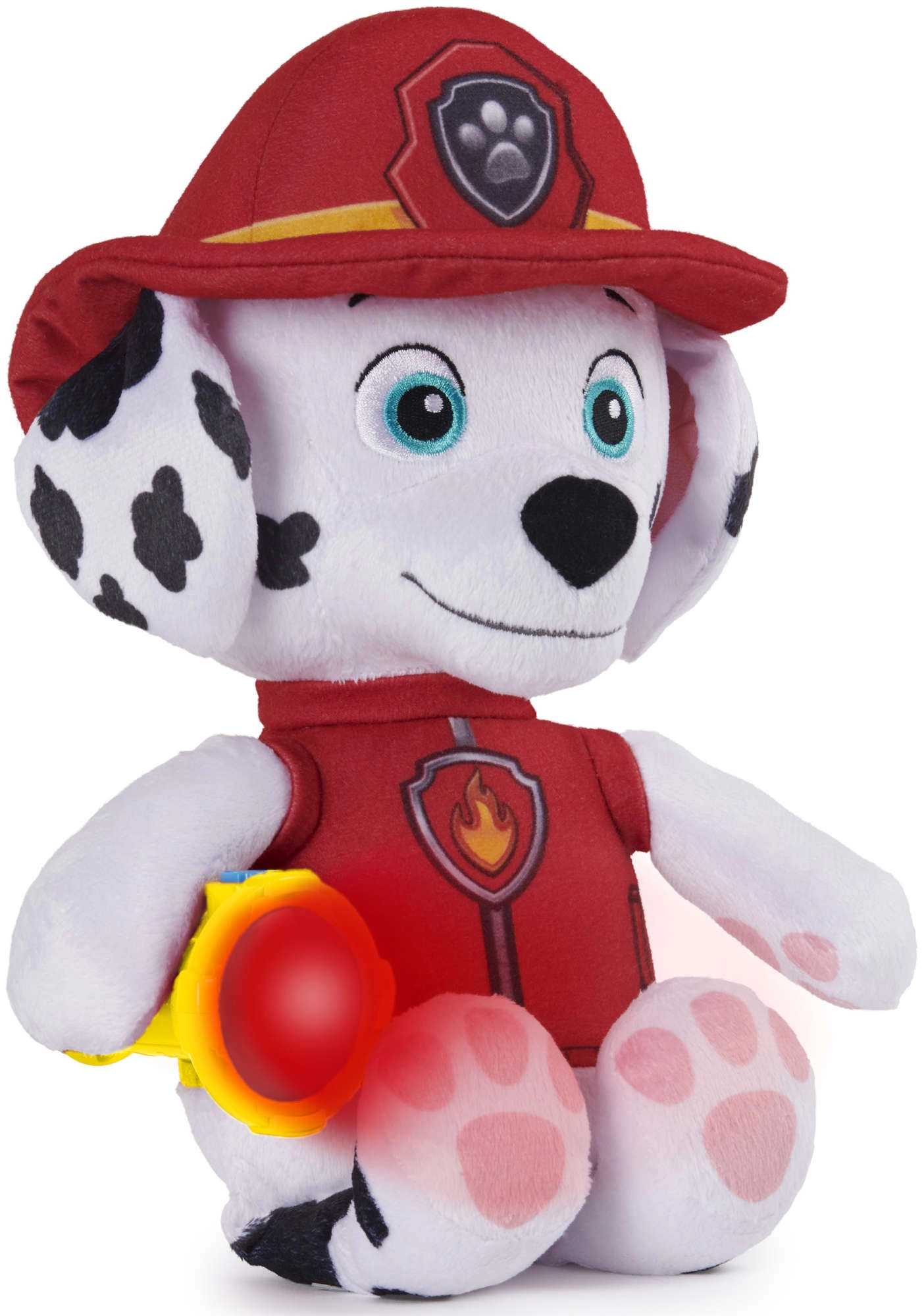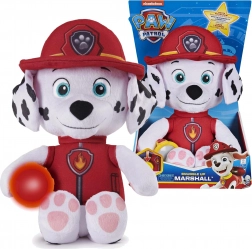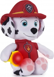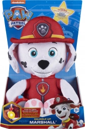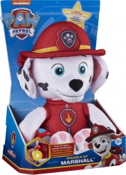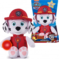 Udělejte dětem radost heboučkým kamarádem z oblíbené pohádky PAW PATROL! Plyšový Marshall je vysoký 32 cm, nosí svůj typický červený hasičský oblek a v tlapce drží svítící baterku, která po stisku rozsvítí světlo, přehraje klidné melodie a popřeje dobrou noc v angličtině. Ideální na mazlení, hraní i jako uklidňující noční lampička.