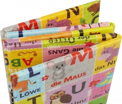 Každá strana nabízí jiný svět: barevná abeceda s obrázky pro první slovíčka a živá vesnická krajina pro fantazijní hry s autíčky a zvířátky.