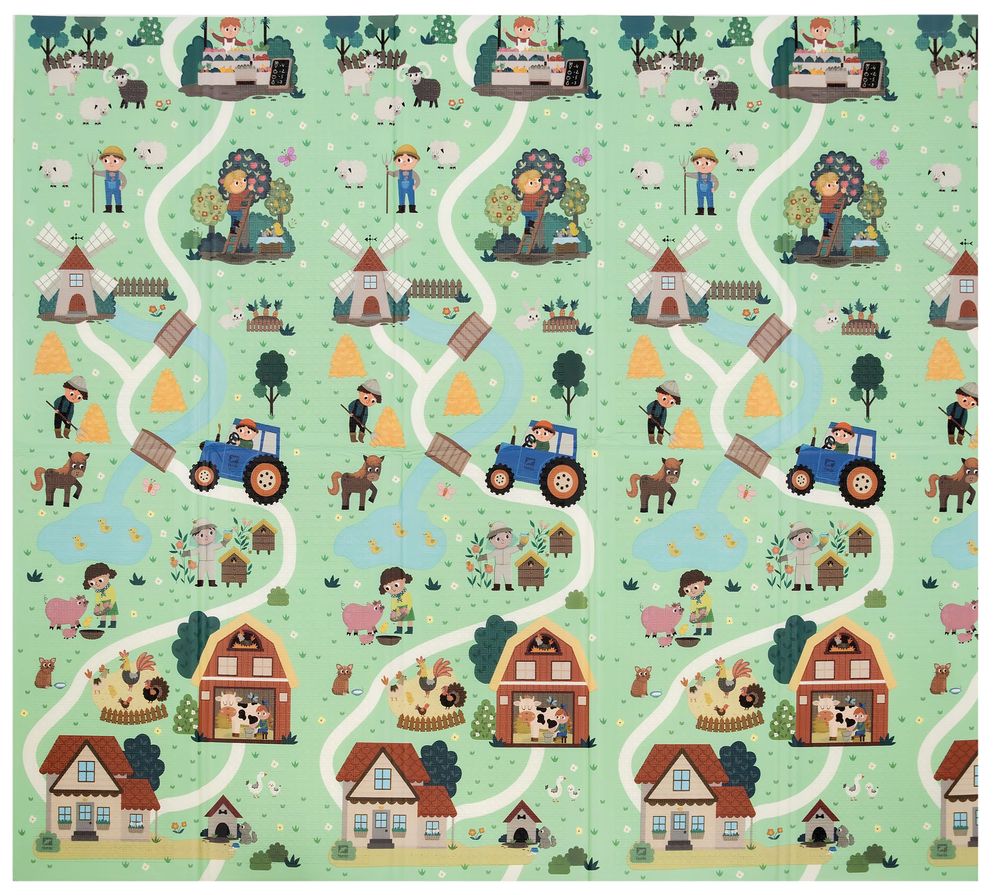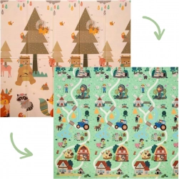 Jedna strana s lesními zvířátky a výškovými měrkami, druhá se silnicemi a vesnicí. Podněcuje fantazii, podporuje motoriku a nabízí stále nové hry.
