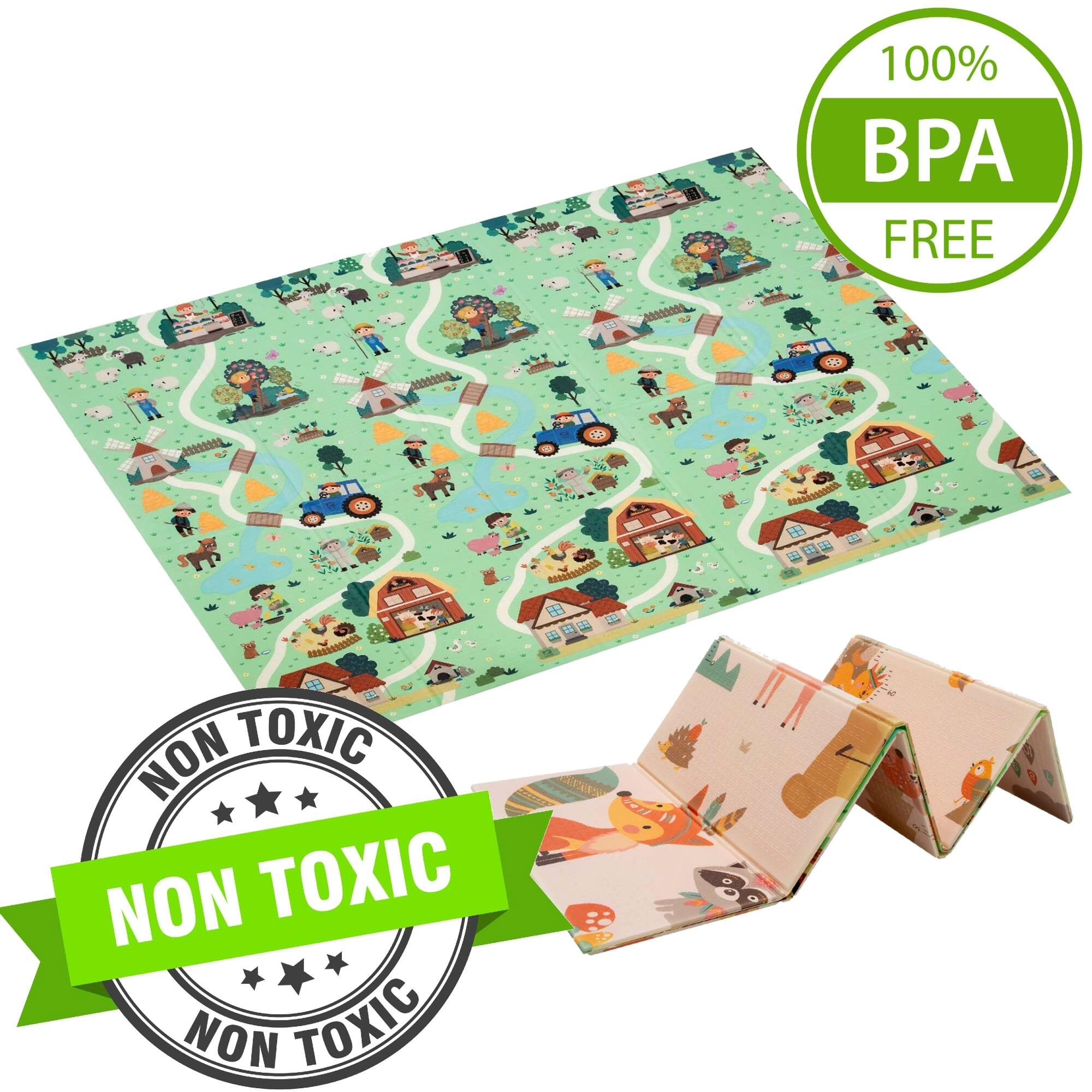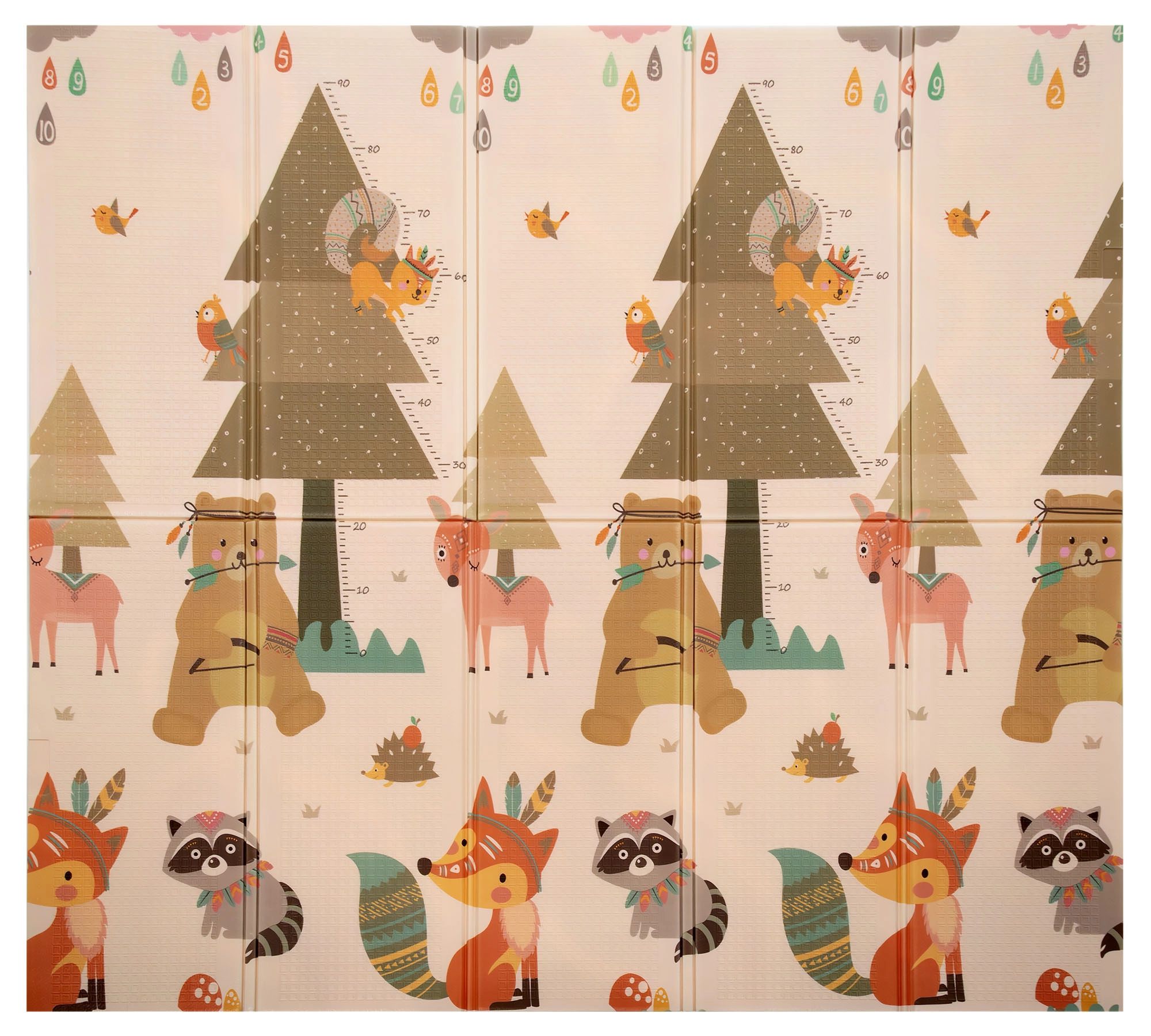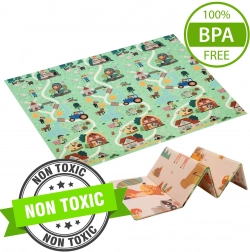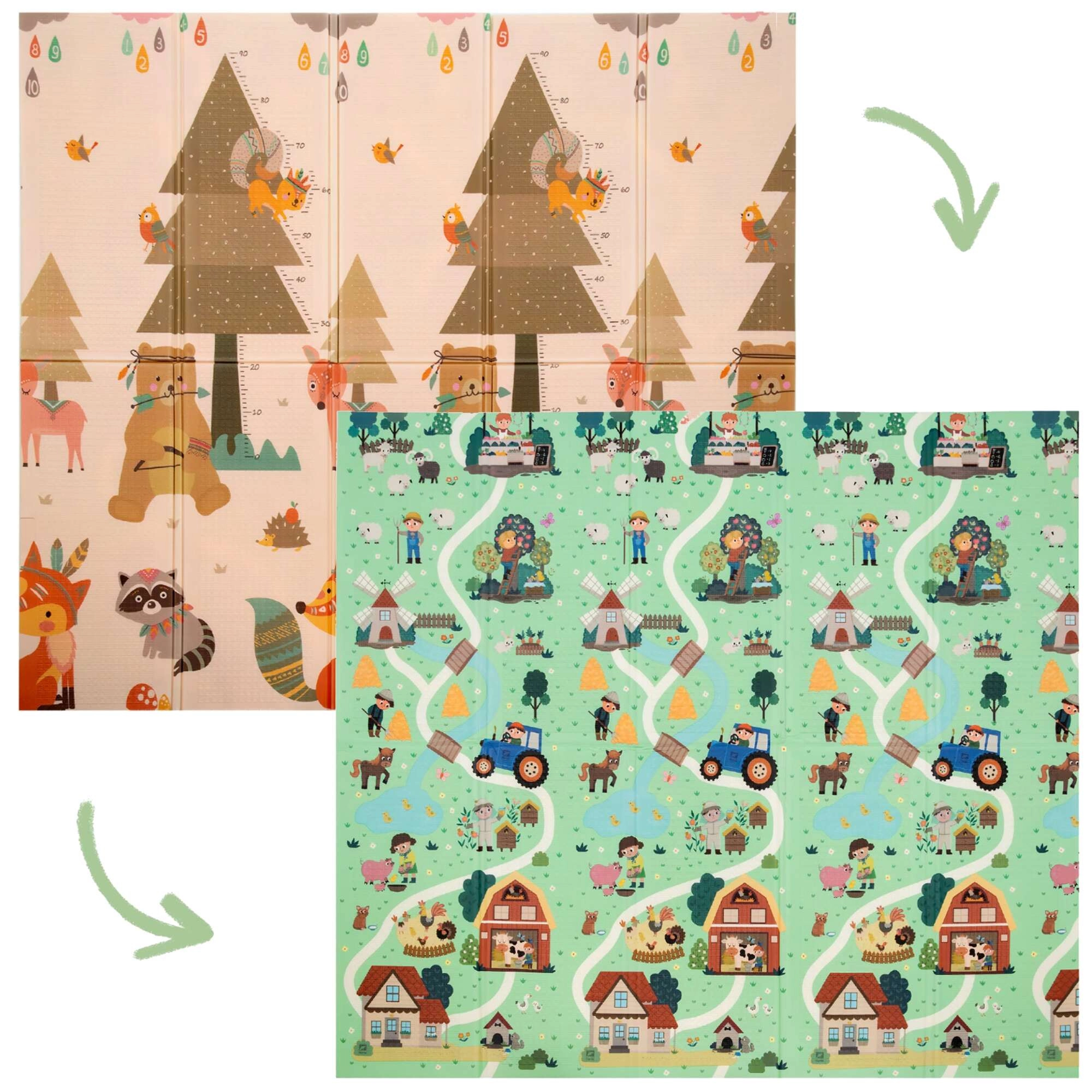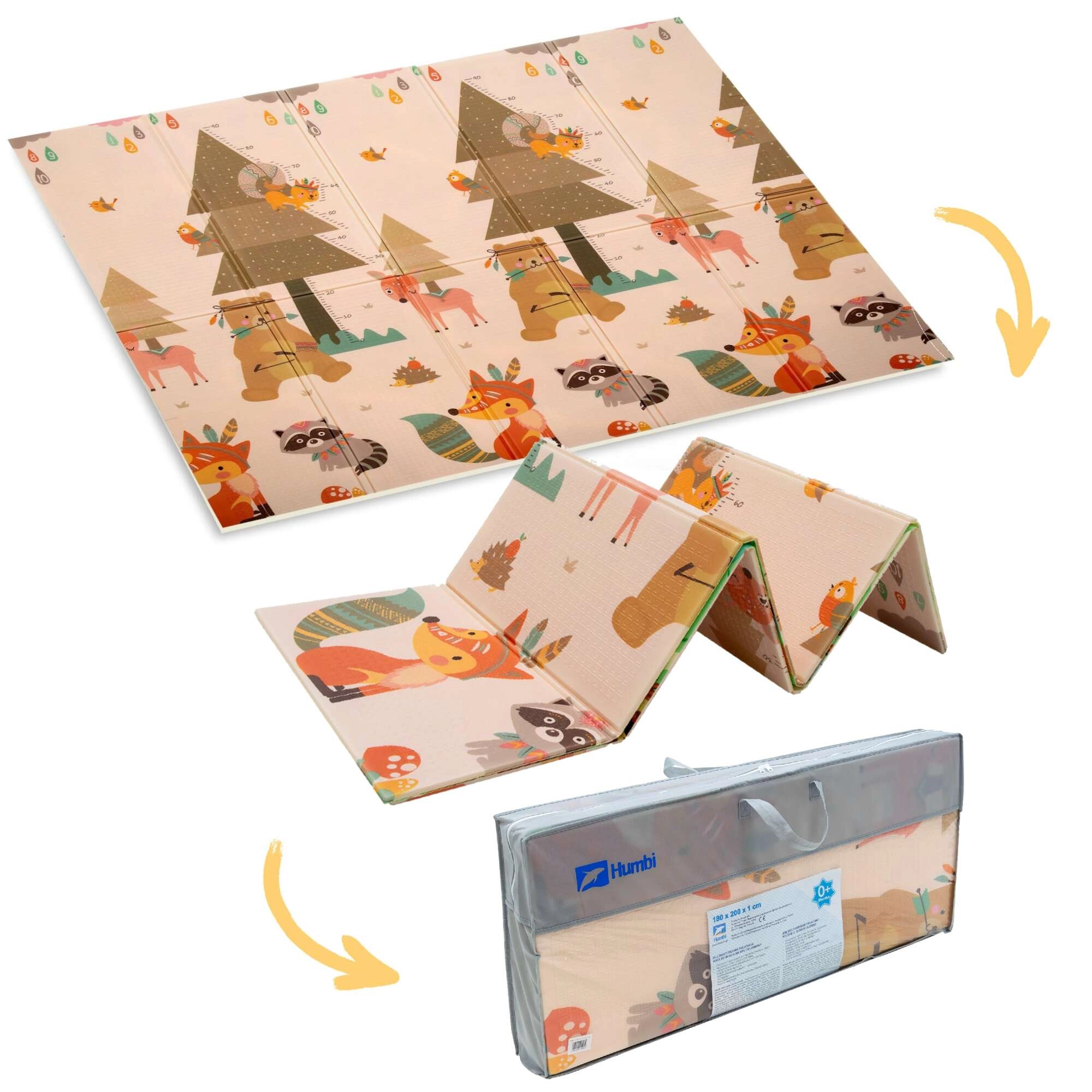 Velká oboustranná hrací podložka z pěny XPE od značky Humbi přináší dětem od narození měkké pohodlí, bezpečí a skvělou tepelnou izolaci. Díky skládací konstrukci a přiložené přepravní tašce ji snadno uložíte i vezmete s sebou. Je voděodolná, snadno omyvatelná, bez škodlivin a nabízí dvě atraktivní edukativní strany: lesní zvířátka a vesnické motivy s cestami pro zábavu a rozvoj fantazie.