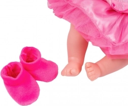 Součástí je čepička s květinou, tričko se srdíčkem, tylová sukýnka a měkoučké botičky. Oblečky lze svléknout a vyprat.