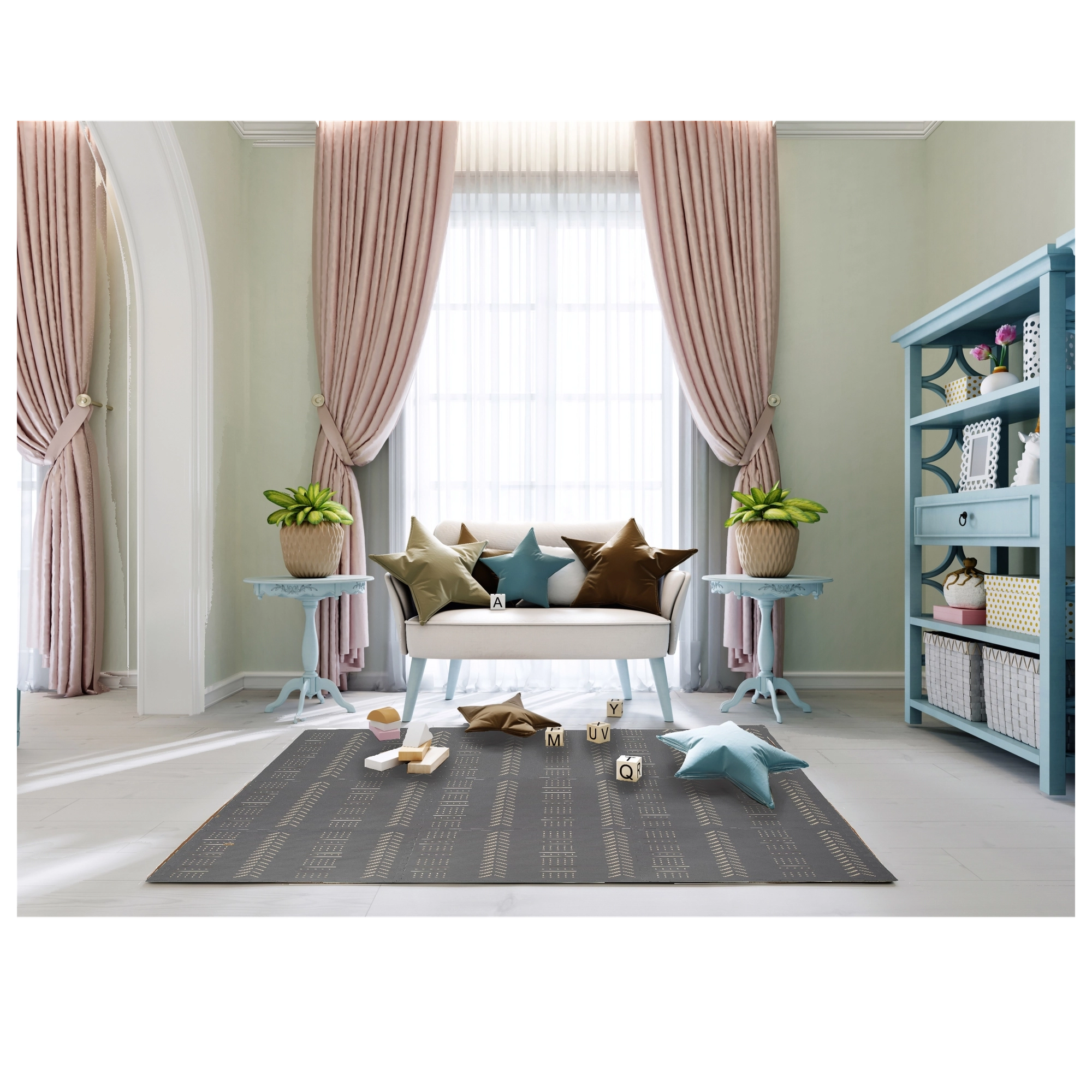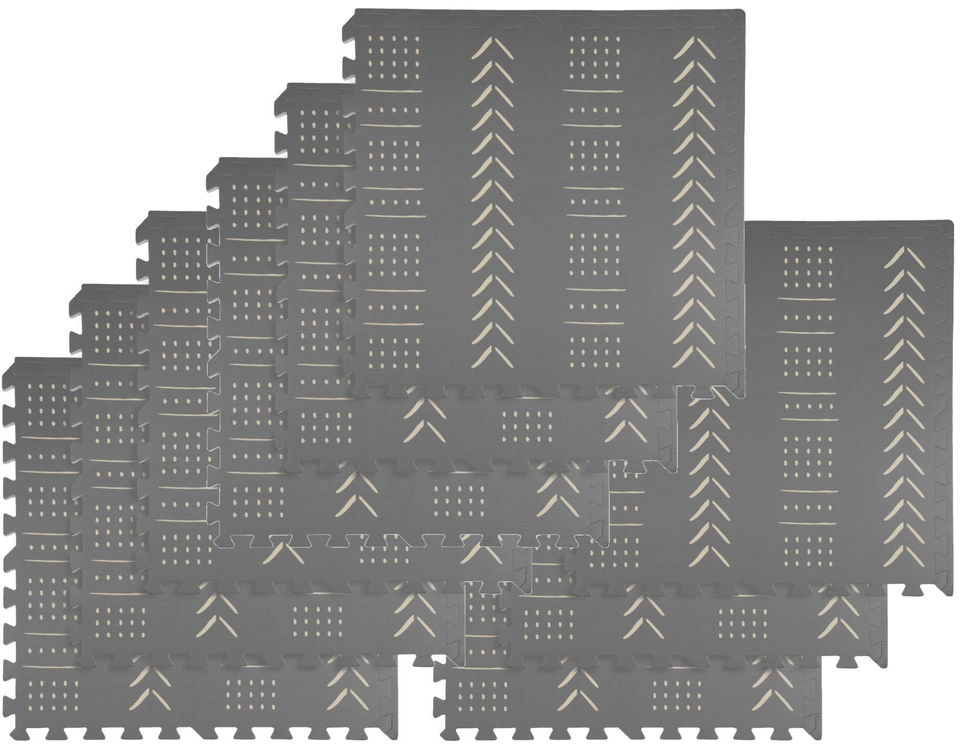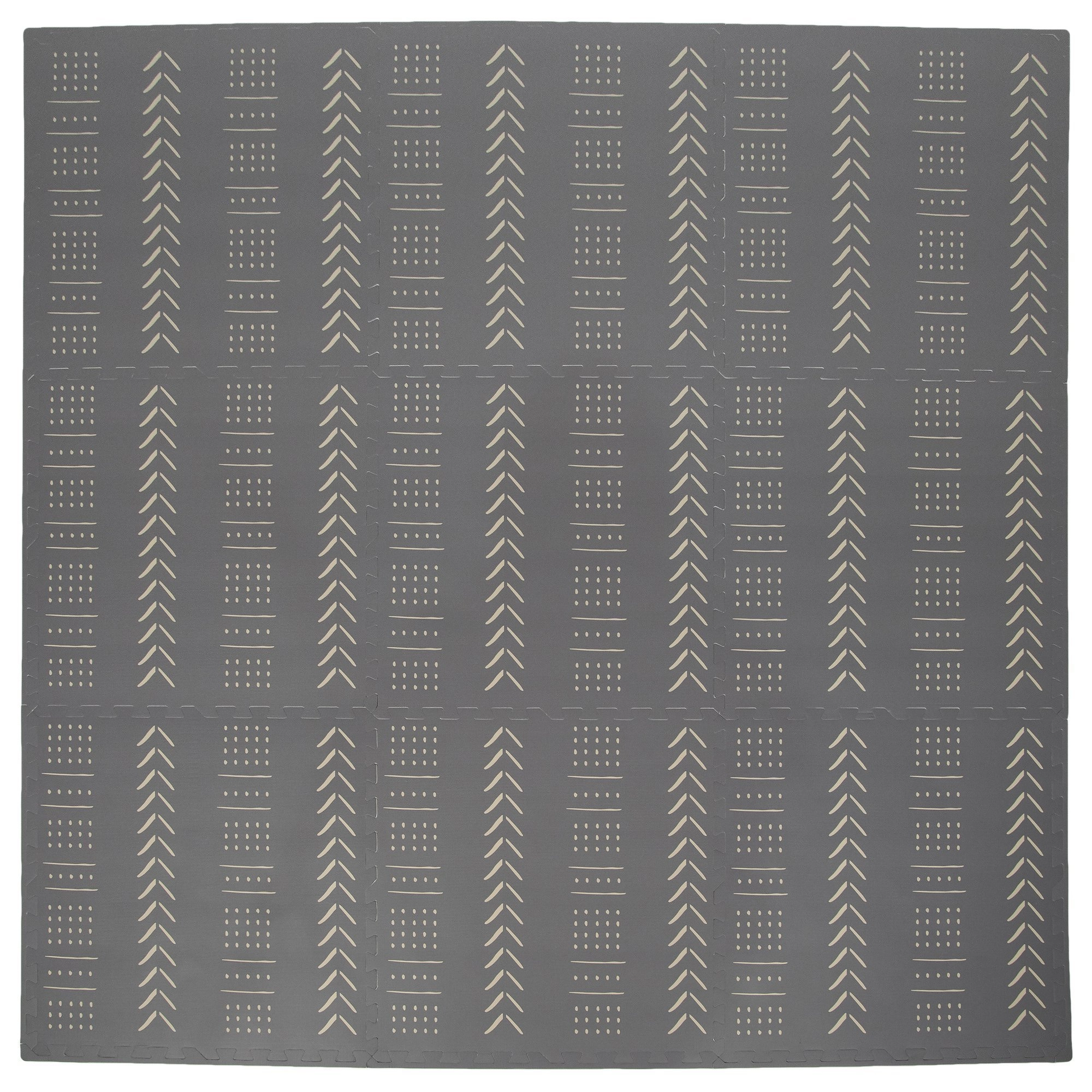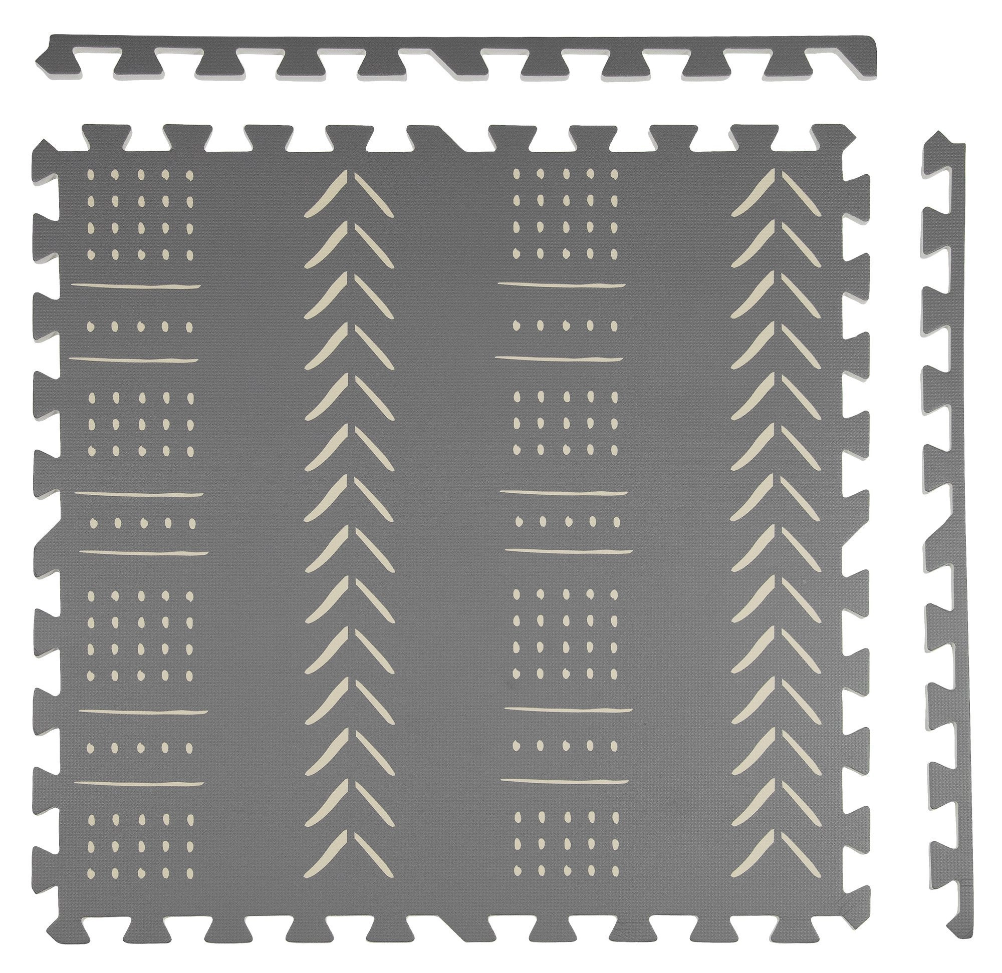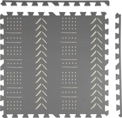 Pěnová puzzle podložka Humbi v elegantní šedé barvě s geometrickým vzorem vytvoří měkký, bezpečný a tichý prostor pro hraní, lezení i relax. Díly se skládají jako puzzle, takže si jednoduše upravíte velikost i tvar. Podložka chrání před chladem podlahy, pohltí nárazy a hluk a díky voděodolnému povrchu ji snadno udržíte v čistotě.