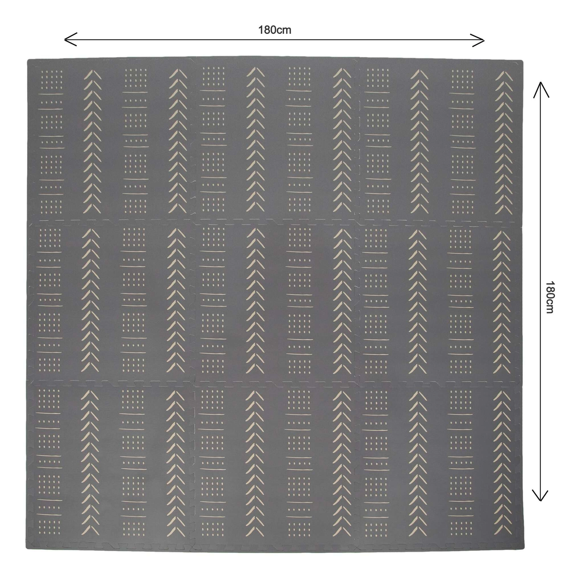 Univerzální pěnová podložka z pružné EVA pěny pro děti i cvičení. Sada 9 propojitelných dílů se zakončeními tvoří plochu 180 × 180 cm. Izoluje od chladu, tlumí nárazy, je voděodolná a snadno se čistí vlhkým hadříkem. Bezpečná pro děti, bez BPA, ftalátů a formamidu.