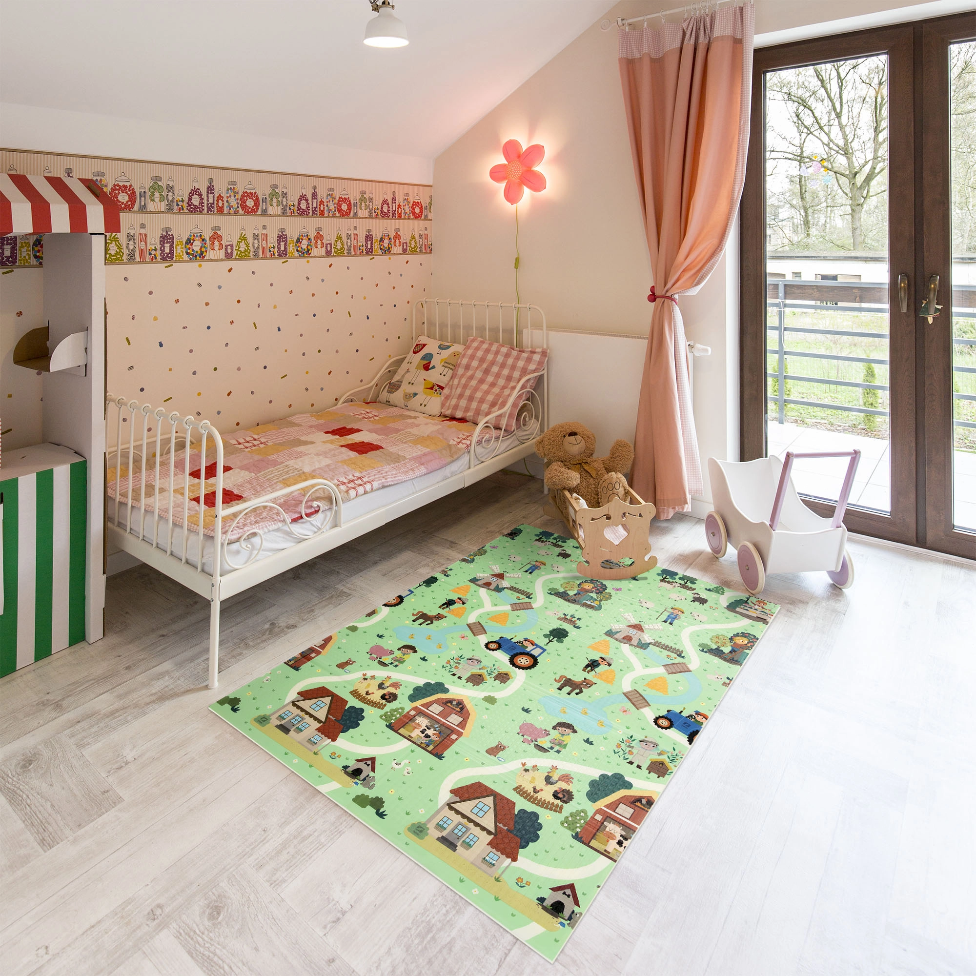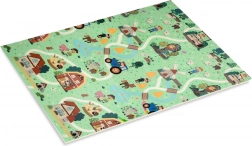 Jedna strana zobrazuje lesní zvířátka, druhá vesnici s cestami pro autíčka. Střídejte motivy podle nálady a podporujte fantazii i smyslové vnímání.