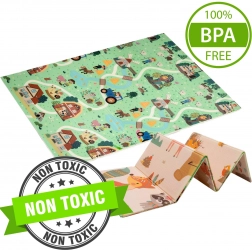 Prémiová pěna XPE je bez zápachu, netoxická a odolná. Díky tloušťce 0,8 cm skvěle izoluje od chladu a poskytuje komfortní polstrování při plazení i prvních krůčcích. Dvoustranný tisk podporuje smyslový rozvoj a podněcuje kreativní hru s autíčky po cestách i poznávání zvířátek.