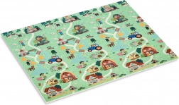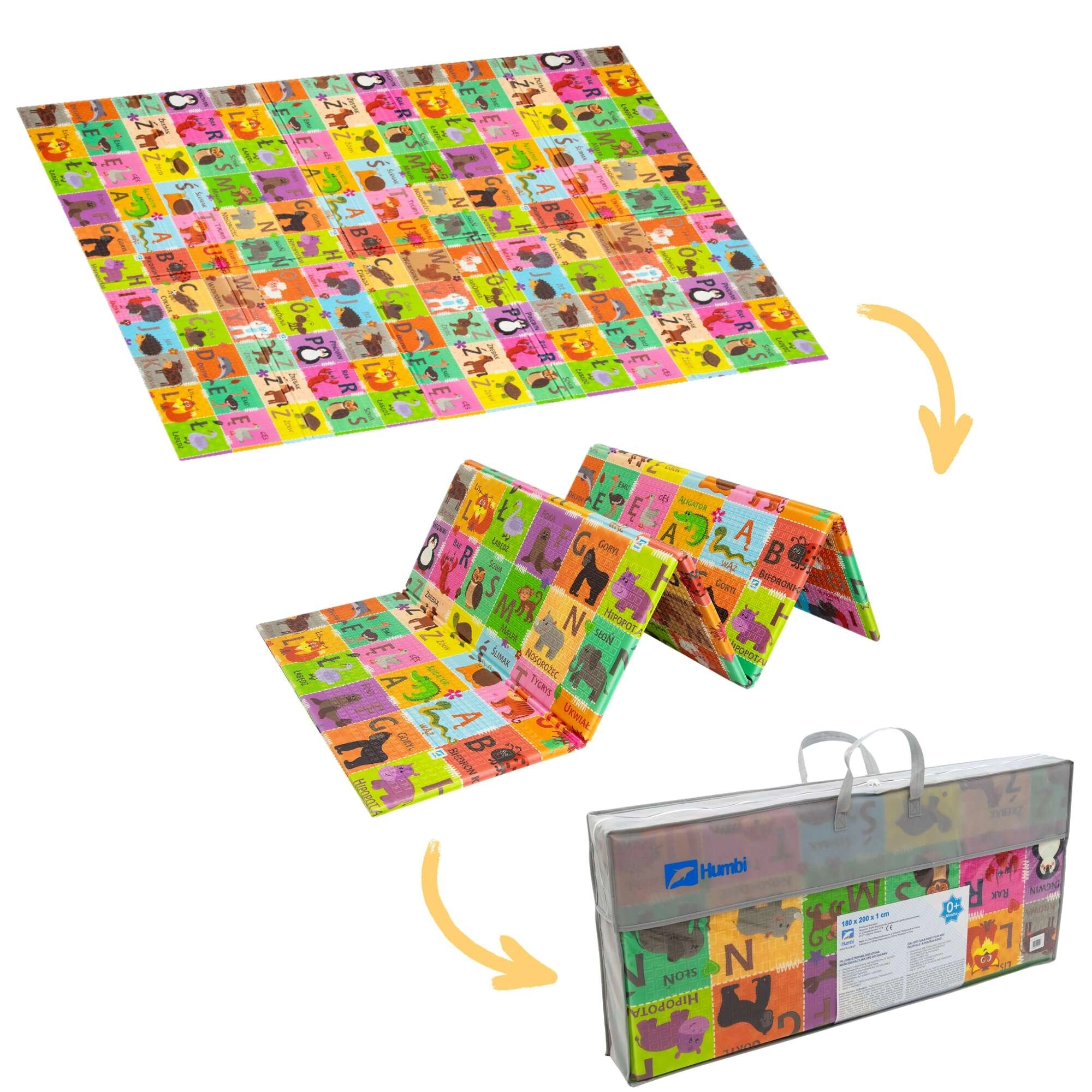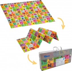 Dvě hravé strany podporují rozvoj dítěte: barevná abeceda se zvířátky a motiv vesnice se silničkami pro jízdu autíčky a objevování. Podložku snadno složíte během pár vteřin, přenesete v přiložené tašce a díky voděodolnému povrchu ji stačí otřít vlhkým hadříkem.