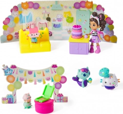 - Obsah balení: figurka Gabby, Mercat, Cakey, Baby Box, Cupcake Cousins, stůl s otočným dortem na tlačítko a další party doplňky.