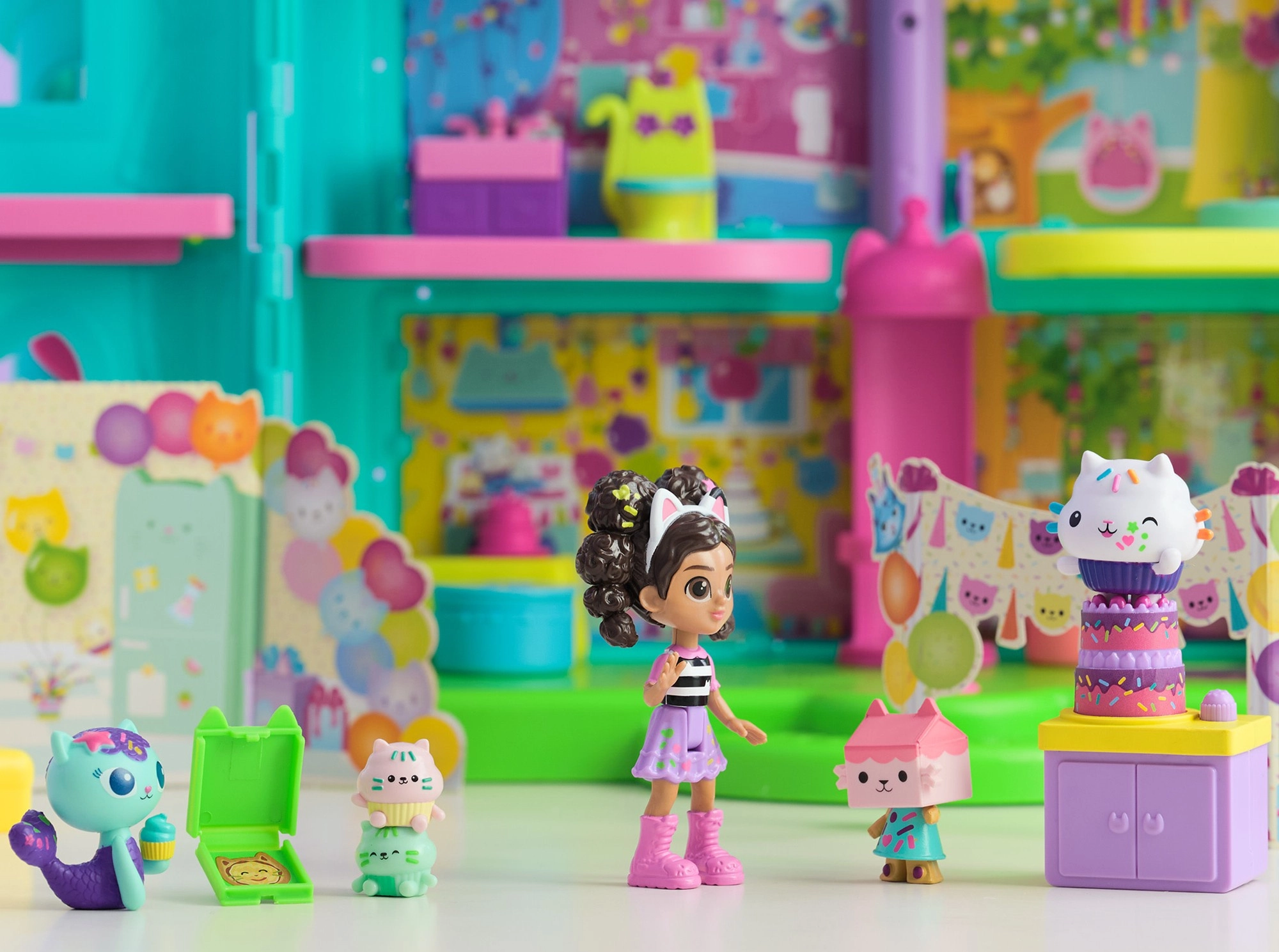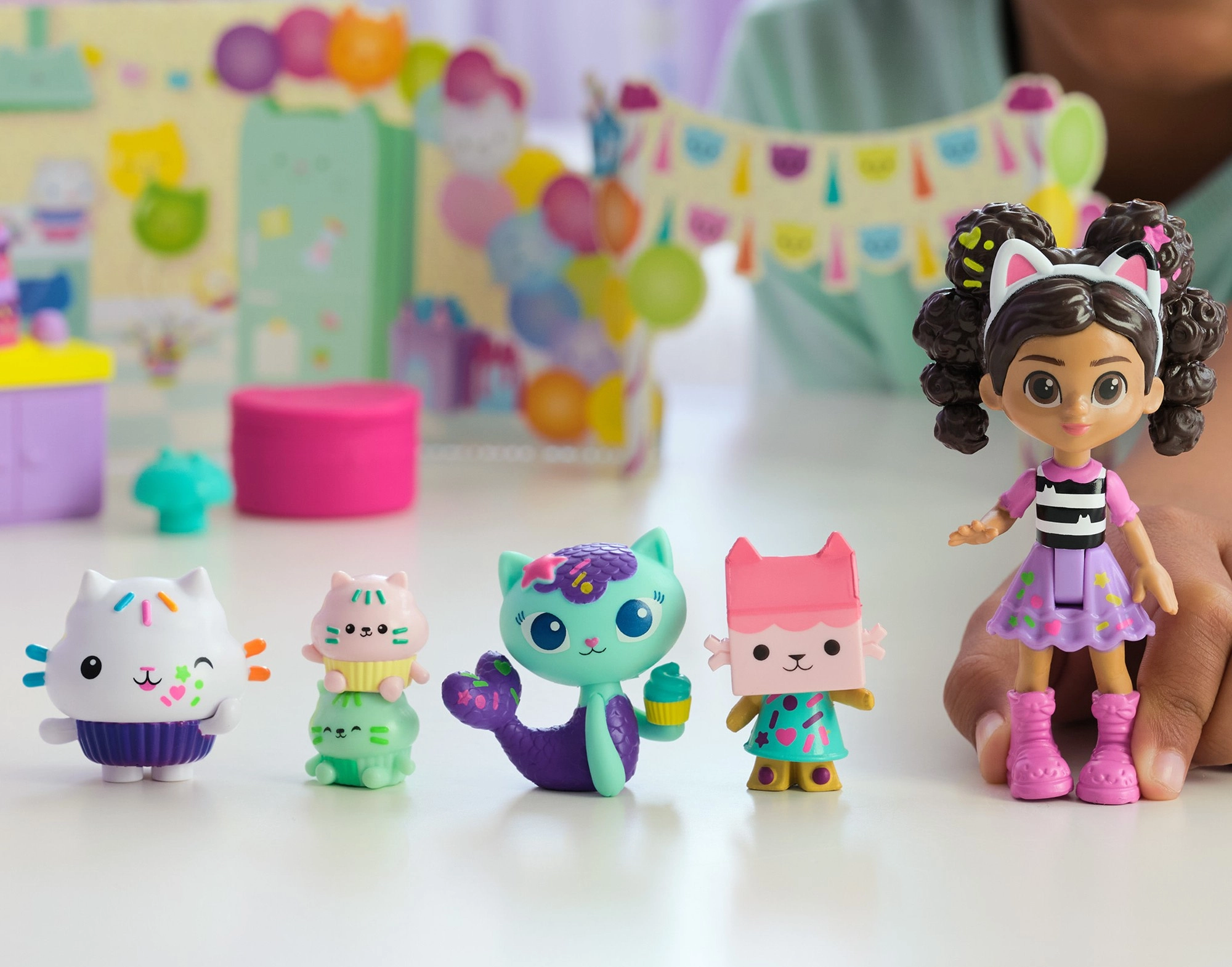 Nechybí Gabby a její kočičí kamarádi – Mercat, Cakey, Baby Box a Cupcake Cousins. Ideální pro přehrávání scén z GABBY’S DOLLHOUSE.